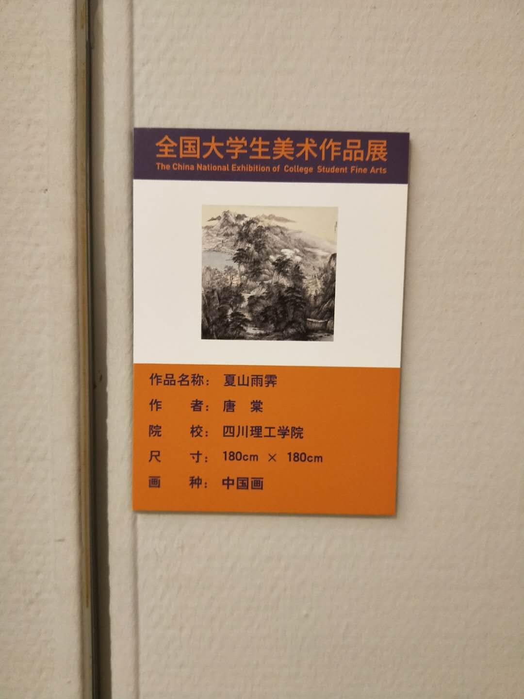 近日,由中国美术家协会与首都师范大学共同主办的首届“全国大学生美术作品展”(国家艺术基金项目)在中国美术馆开幕。我校美术学院2016级美术专业国画方向研究生唐棠同学的作品《夏山雨霁》入选并参展,唐棠同学作为入选学生代表应邀参加了2017年12月14日在中国美术馆举办的开幕式。