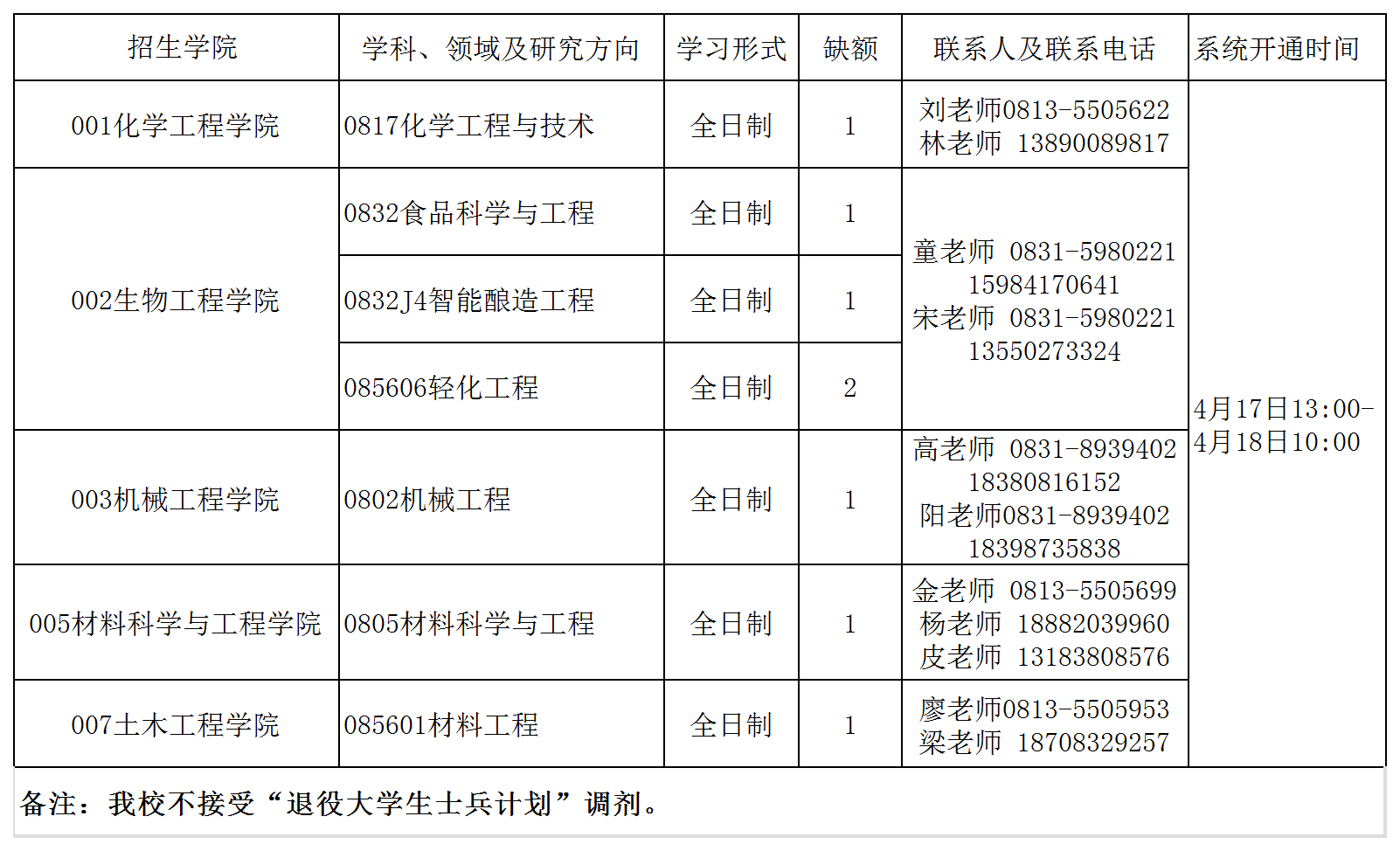 1.我校本批次计划余额信息自4月17日13:00起在研招网“复试调剂服务系统”发布,根据各学科专业生源情况及时更新或关闭计划余额信息,开放调剂系统持续时间不少于12个小时。