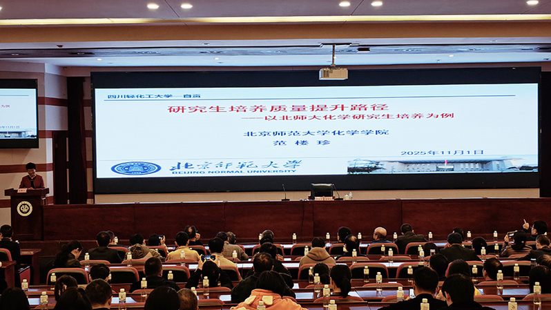 为深入贯彻落实国家关于研究生、本科生教育改革发展的重要精神,持续提升我校研究生、本科生培养质量,11月1日上午和下午,研究生院特邀北京师范大学范楼珍教授莅临我校,在汇东校区学术报告厅分别作了题为“研究生培养质量提升路径”和“高等教育教学研究与实践——以‘物理化学’为例”的专题讲座。自贡校区各学院院长、副院长、教学科研办公室主任、研究生导师代表、教师代表等百余人参加。报告会由研究生院院长蒋维东主持。
