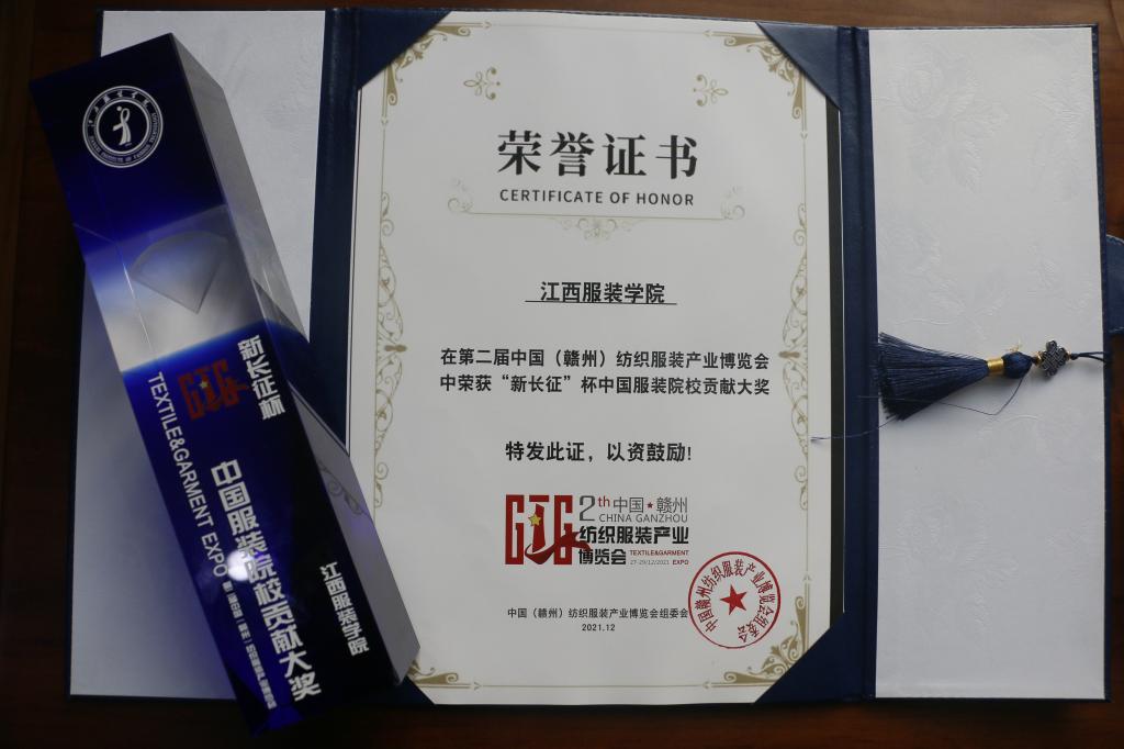 服博会上,于都县委书记黄法为我校理事长涂顺强颁发了“于都纺织服装产业发展顾问”的聘书。同时,我校荣获“新长征杯”中国服装院校贡献大奖。