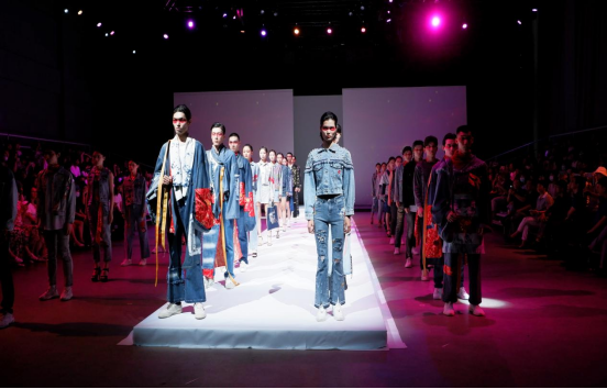另悉,6月19日当天,于都县邓小兰副主任一行在校领导陪同下,观看了万象城平台牛仔产业学院与于都县共同举办的“映山红”牛仔时尚发布会。参加本次发布秀的59套风格多样、创意十足的牛仔服装均由牛仔产业学院师生共同设计完成。在服装设计和制作过程中得到了江西仔衣库服饰有限公司和顺德纺织商会与顺德纺织服装协会的大力支持。服装采用了绿色环保、智能洗水工艺面料与科技牛仔面料,结合废旧面料循环再利用,运用贴布绣、刺绣、面料拼接等工艺手法将五角星、中国logo、红丝巾、花卉等红色文化元素完美的结合和连接搭配,融入其中,牛仔在时尚靓丽的服装表演专业模特们的完美演绎下,带给观众一种层次感,艺术美的视觉体验。是一场传统复古与现代时尚完美交汇、专业设计与红色文化互动共升,美好生活,饮水思源,不忘党恩,献礼建党百年的视听盛宴。牛仔发布秀赢得了与会嘉宾们的赞叹,纷纷表示,原来牛仔也可以做得如此精致!