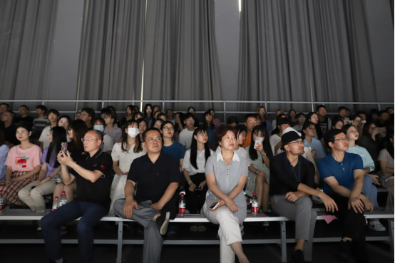 嘉宾在校领导陪同下观看“映山红”牛仔时尚发布会