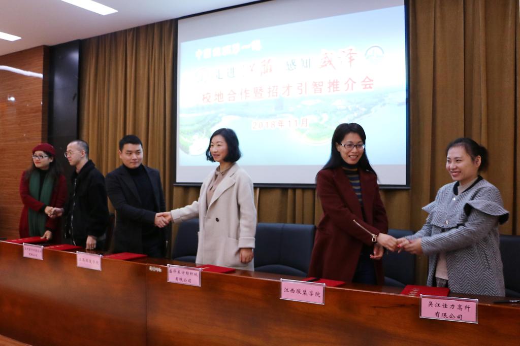 服装报讯:11月18日,由我校与吴江高新区(盛泽镇)共同举办的“走进江服·感知盛泽”校地合作暨招才引智推介会活动在我校行政楼报告厅举行。