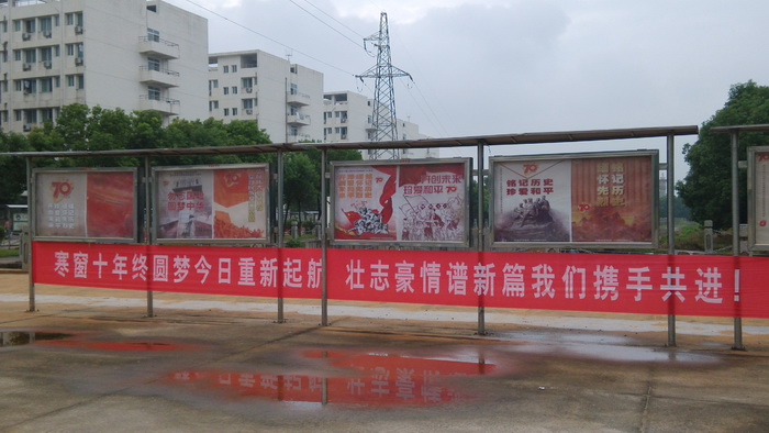 “铭记历史、缅怀先烈、珍爱和平、开创未来”十六个字印在横幅上挂在江服主教楼的醒目位置,无论何时何地,每一个江服人都应牢记历史,不忘初心,为实现中华民族的伟大复兴,把满腔爱国之情化为发愤学习之动力,热忱报国之行动。
