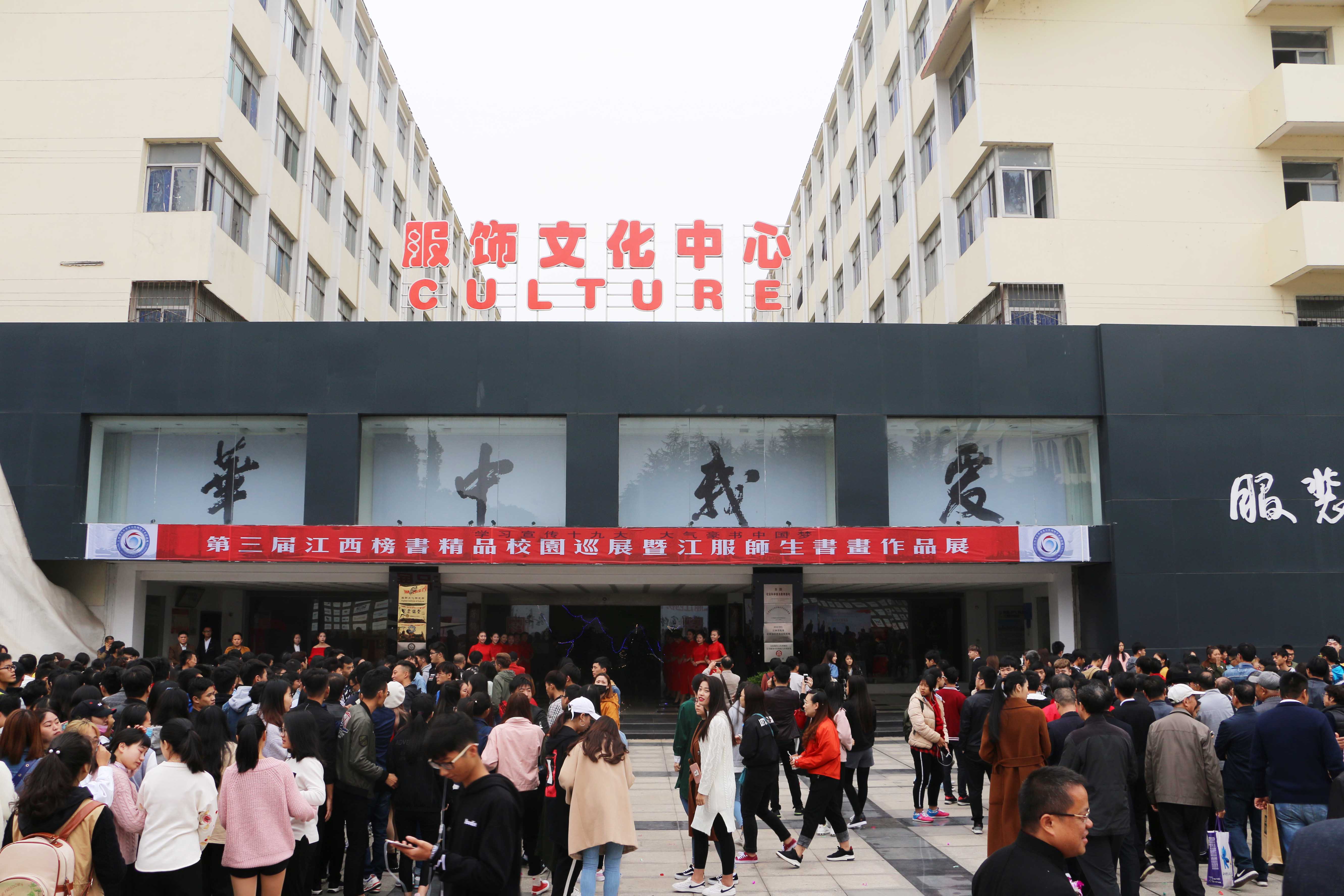 第三届江西榜书展内容丰富,大字、大幅、大气特点鲜明,彰显了榜书的“豪气、神气和正气”,给人以超强的视觉冲击和美的享受,与歌颂伟大的中国共产党和江西红色文化,引人向上,催人奋进。参展作品整体水平很高,真、草、隶、篆悠久深厚、大气磅礴,既体现了遵崇传统,扎实临帖的坚实功底,又有一些以传统为根基,锐意创新的时代意识,古不乖时,今不同弊,汉风唐韵,令人留恋。尤其是三十余幅服饰文化榜书作品,将桑蚕华服、霓裳锦衣表现得多姿多彩,可谓是各美其美,美美与共。本次展览共展出优秀榜书作品近两百幅,同时还举办了现场笔会和榜书科普交流,书画家们挥毫泼墨,奋笔疾豪书,互学共勉,讴歌新时代,书写新篇章。从预展到正式开幕以来,万余名师生兴致勃勃入馆参观。来自清心阁的黄善桂女士有三幅作品在此展出,她告诉记者,“江服的文化积淀很雄厚,这种传承中国传统文化的气氛很令人动容,不亚于一些专业的书画展”。时尚传媒学院17级广播1班学生王玉华在参观完书法作品后告诉记者,“这次书画展的内容很丰富,让我们感受到了优秀传统文化的魅力,看完以后真有想拿起笔的冲动。”