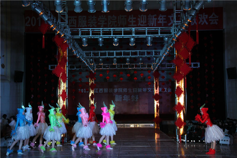 伴着迎新年的喜庆鼓声,身着红袄,扎着牛角辫的小娃娃们蹦蹦跳跳的《醉鼓闹春》用欢乐的气氛拉开了联欢会的序幕;艺术团带来的《鸟语花香唱江服》,这群灵动的小鸟,用鸟儿的眼睛欣赏江服,用清脆悦耳的鸟语赞颂江服,从独特的视角展现了我校多彩的校园文化生活,也让师生们沉醉于鸟语花香的江服校园中;《立裁姑娘》独具匠心地将服装立裁融入舞蹈,以独特新颖的方式展现出江服的办学特色,体现了我校“勤信博雅”的校训,彰显出江服学子热爱专业,热爱服装,热爱生活,并为之肯吃苦、肯努力的良好品格;时尚的服装,天真的笑脸,童稚的步伐,江服时尚幼儿园的一群小朋友们为观众带来走秀《爸爸去哪儿》,将整场联欢会的气氛推向高潮。联欢会上还有小品,歌舞等节目也都展现了迎新年的欢乐氛围,为师生带来了一场精彩绝伦的视觉盛宴。最后,在师生合唱《阳光路上》激情高昂的歌声中,联欢会画上了圆满句号。