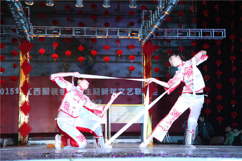 联欢会以“师生联欢迎新年,振奋精神逐梦想”为主题,带来了新年新气象,一片欢声笑语中,抵挡不住的是广大师生对新一年的热切期盼,相信在新的2015年里,我校师生必将以昂首挺胸的姿态,努力建设有特色高水平院校,为早日实现江服梦、中国梦而不懈努力。(摄影/万强 余冬梅)