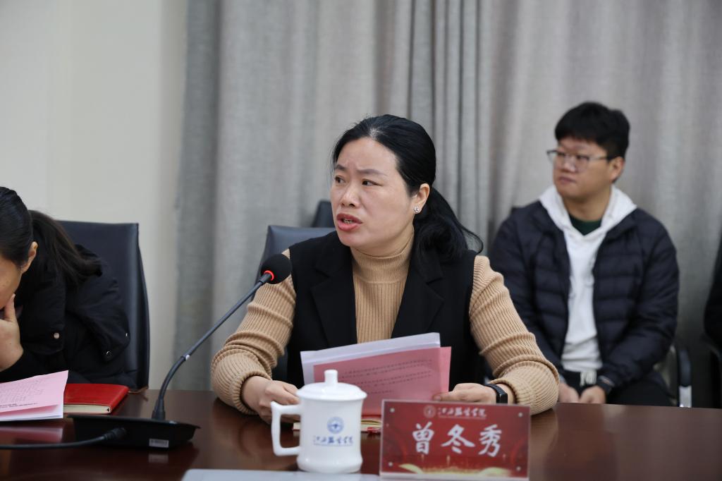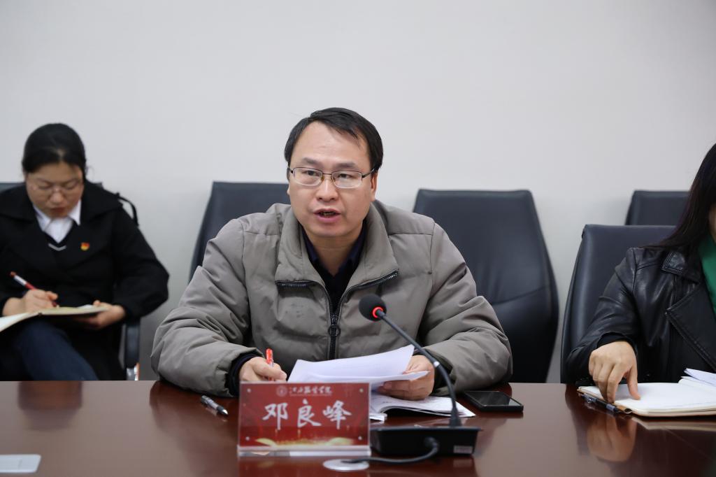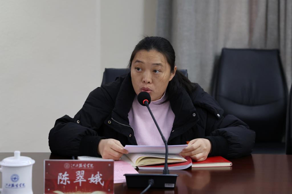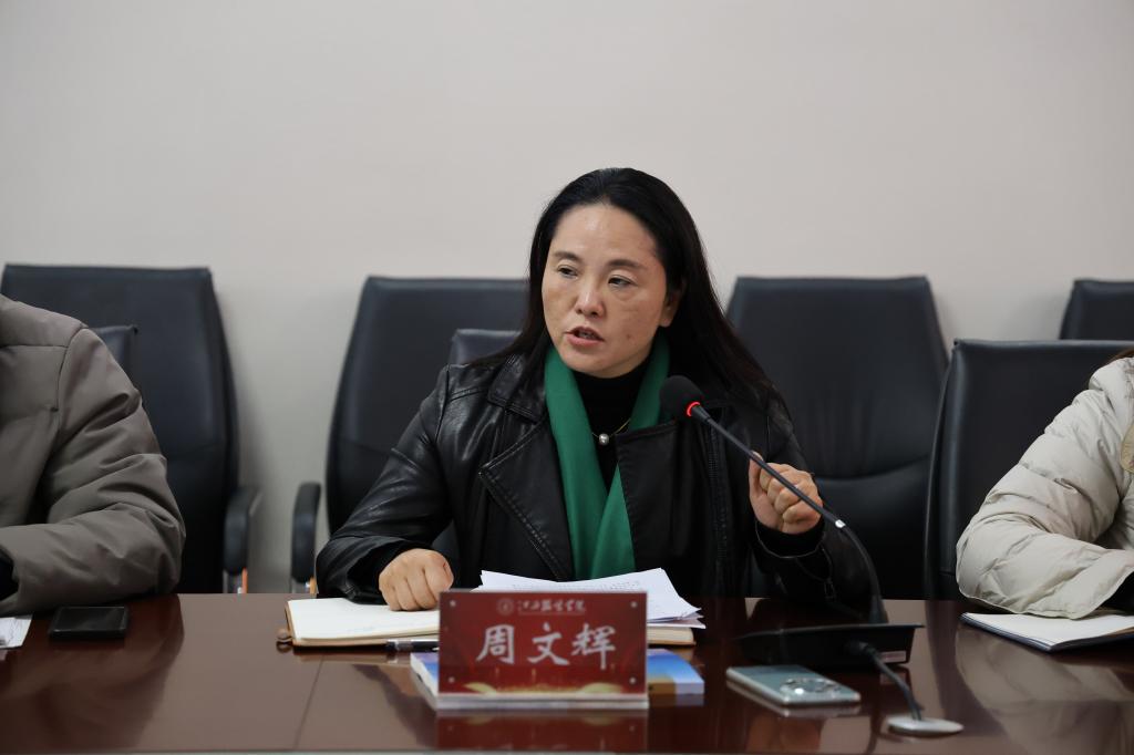 会上,党委宣传部部长沈新建通报了2024年秋季学期思想政治工作与意识形态工作检查情况,并部署近期重点任务;统战部部长陈翠娥通报了2024年秋季学期统战工作落实情况,并部署近期重点工作;教师工作部部长曾冬秀、学生工作部部长邓良峰汇报了师生思想政治工作情况;教务处处长周文辉汇报了课程思政建设情况;马克思主义学院党总支副书记陈洋安汇报了思政课建设情况;服装设计学院党委书记蓝岚、时尚传媒学院党委副书记黄朝辉汇报了学院思想政治工作与意识形态工作,就一院一品精品项目建设作交流发言。
