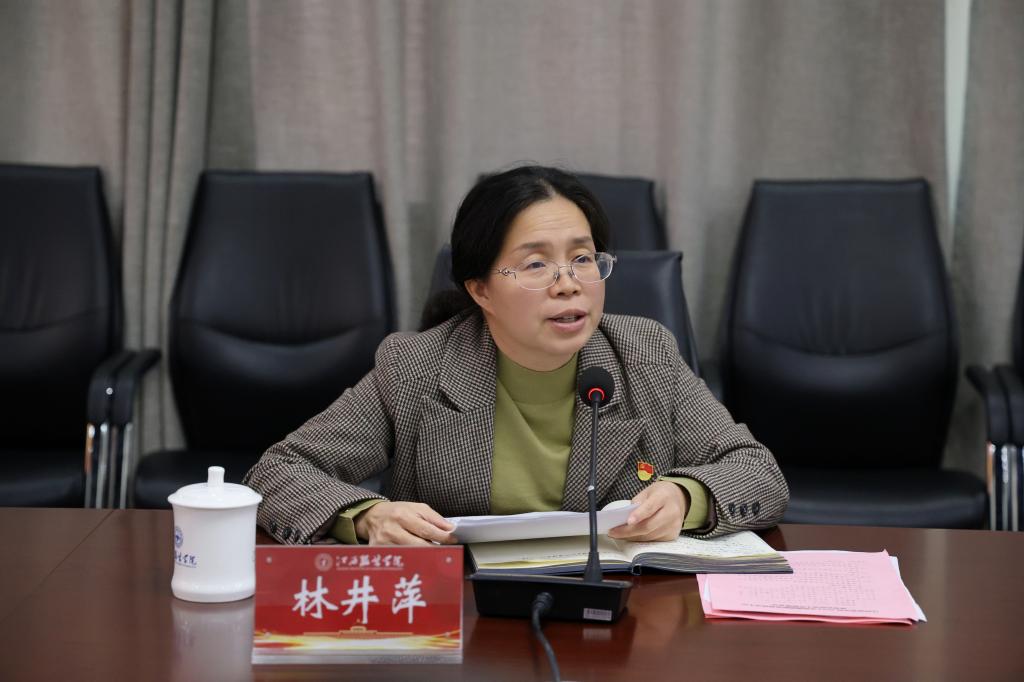 林井萍指出,意识形态工作是党的一项极端重要的工作,思想政治工作事关党对高校的全面领导,事关社会主义办学方向,事关落实立德树人根本任务,全校上下要牢牢把握正确政治方向,守牢意识形态底线,不断加强和改进工作方法和手段,增强政治敏锐性和政治鉴别力,切实做好各项工作。