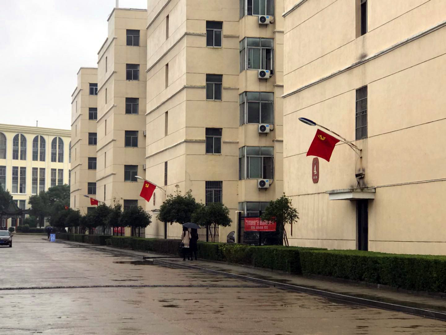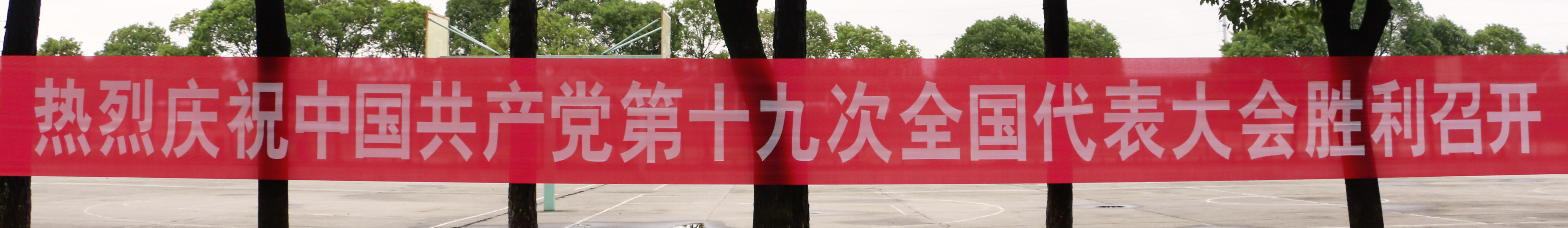 校园内飘满了鲜艳的党旗