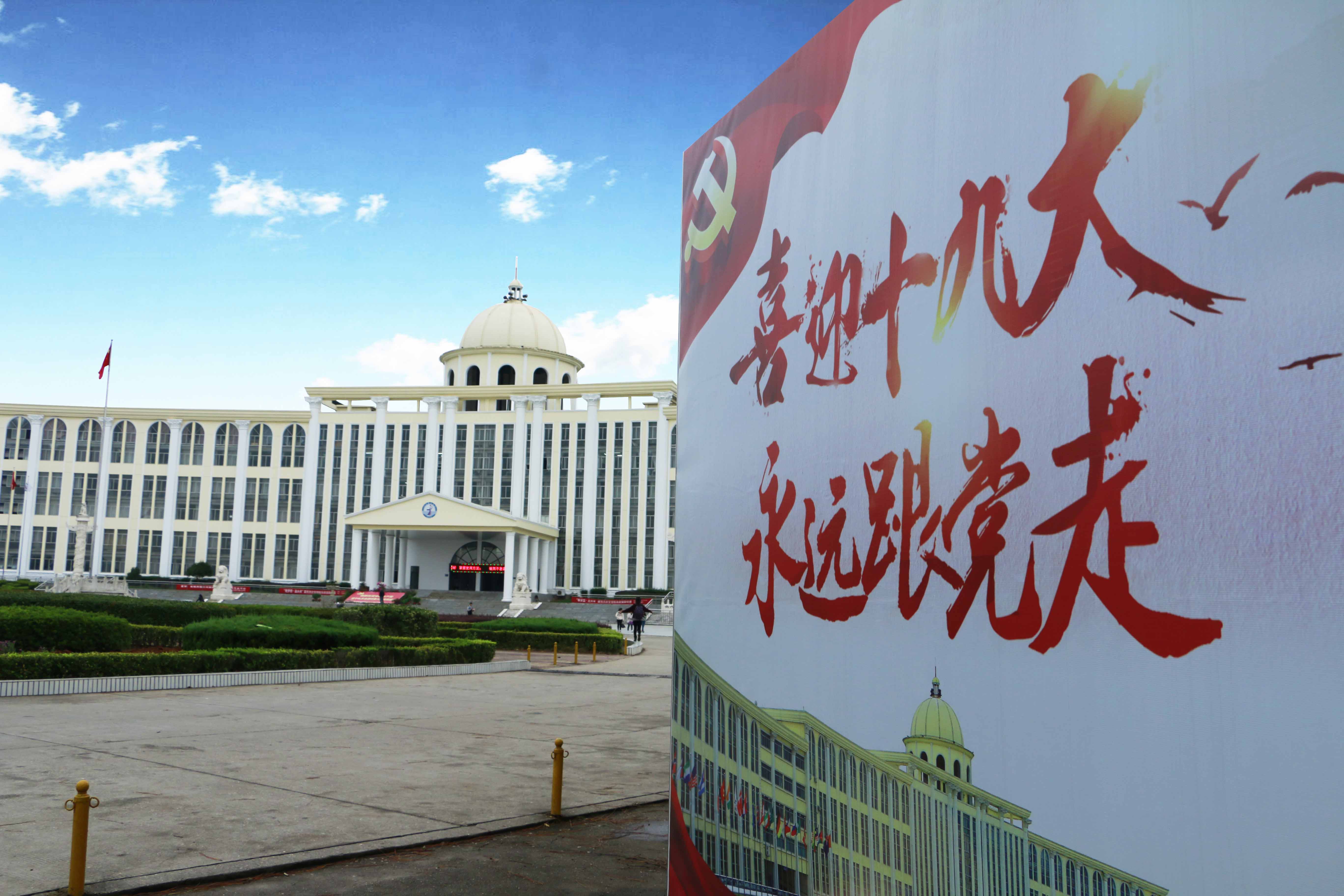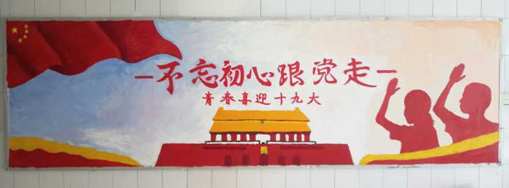 随着党的十九大的临近,万象城平台的主次干道上飘满了鲜艳的党旗、国旗,教学楼、班级教室、学生公寓楼内、公共场所等,随处可见“喜迎十九大 永远跟党走”“学习十九大 宣传十九大”等标语、宣传栏、黑板报、喷绘、宣传画等,各处 LED屏也在不断滚动播放喜迎十九大宣传标语,全校范围内洋溢着良好的、浓厚的喜迎十九大氛围。