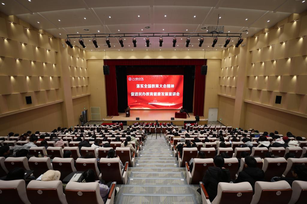 林井萍指出,本场讲座既是一场生动的专题宣讲,又是一次感染人、启迪人、激励人的专题教育课、指导课,具有很强的政治性、思想性、启发性、指导性,对于我们下一步贯彻落实全国教育大会精神,促进民办教育健康发展,引领推动学校高质量发展,具有很强的理论和实践指导意义。她就学习落实黄小华会长的宣讲精神提出三点要求:一要提高政治站位,增强大局观念。各学院、各部门要深入学习领会全国教育大会精神,并认真贯彻落实全省教育大会精神及有关部署要求。坚持社会主义办学方向,落实立德树人根本任务;二要强化使命担当,持续深化改革。要深化教育教学改革,创新思政教育模式,提升人才培养质量,不断增强学生综合素质和就业能力,推动全国、全省教育大会精神落实落地,见行见效;三要积极融入教育强国、强省建设,贡献江服力量。要胸怀“国之大者”,突出需求导向,聚焦“1269”行动计划,认真答好“教育强国江服何为”“教育强省江服何为”的时代答卷。