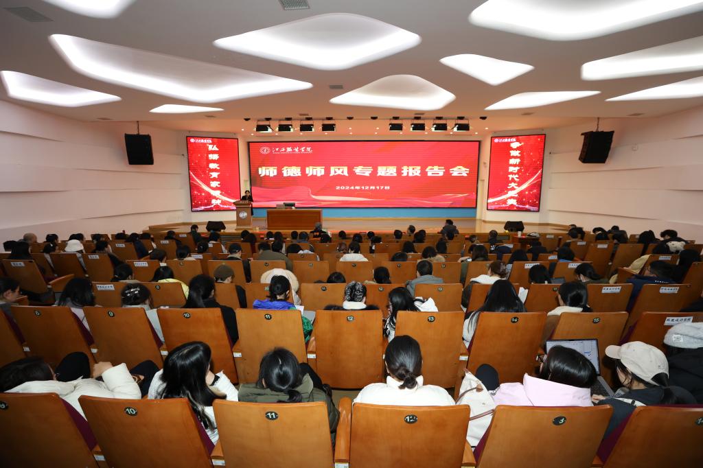 新闻中心讯(图/文 万强)为深入学习贯彻全国教育大会精神和习近平总书记关于教育的重要论述,进一步加强和改进学校师德师风建设工作,提升教师思想政治素质和职业道德水平,12月17日下午,学校邀请全国模范教师、全国教书育人楷模支月英教师来校在思贤楼三楼报告厅举办师德师风专题报告。在家校领导、全体中层干部、各学院教师代表共400余人聆听了报告。报告会由校党委书记、督导专员林井萍主持。