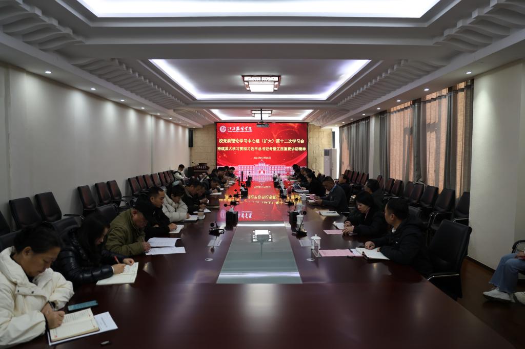 校党委书记林井萍传达学习了《在习近平总书记再次考察江西一周年之际省委常委会召开(扩大)会议》精神、领学了《习近平文化思想学习纲要》第一节到第三节;与会人员集中观看了《习近平在江西考察时强调解放思想开拓进取扬长补短固本兴新奋力谱写中国式现代化江西篇章》视频新闻;校党委副书记、纪委书记李宝君,校党委副书记唐新强,党委委员、统战部部长陈翠娥分别围绕中心组学习内容作了交流发言。