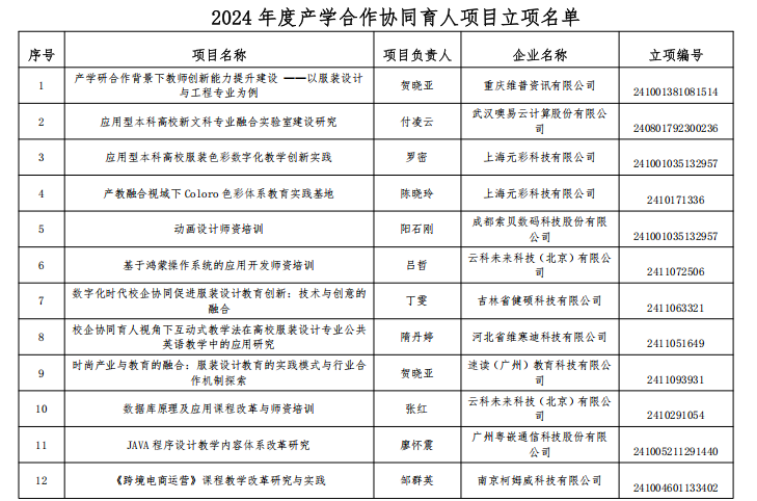 根据《教育部产学合作协同育人项目管理办法》(教高厅〔2020〕1号)、《教育部高等教育司关于调整产学合作协同育人项目运行模式及征集2024年产学合作协同育人项目的通知》有关要求,产学合作协同育人项目运行模式调整后,由高校作为项目运行管理的主体。经教师申报、企业评审、学校审核,共计17个项目立项。