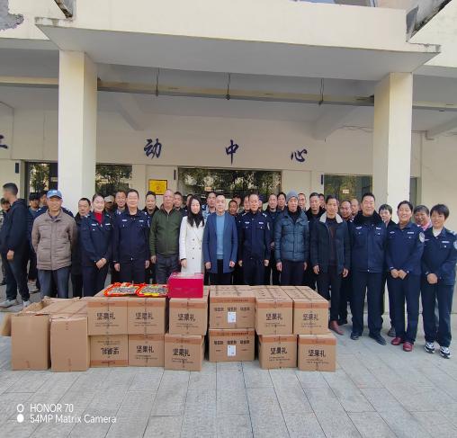 在慰问寒假在岗教职工时,李宝君向每一位寒假值班的教职工致以新年的祝福,并代表学校对大家寒假期间依旧坚守岗位的精神表示敬意。李宝君希望江服教职工在今后的工作中筑牢爱校如家情怀,弘扬无私奉献精神,为建设平安美丽的江服校园贡献力量。此外学校还为值班的教职工送上了冬季慰问品,大家纷纷表示,虽然天气寒冷,但学校的关怀却如春日暖阳,温暖人心。