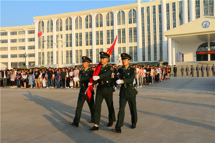 服装报讯(记者/廖智力 摄影/张蔷薇)9月18日早晨,我校团委学生会成员和服装设计学院2017级全体新生在主教练A座大厅前整齐列队,庄重举行了“九·一八”升国旗仪式。服装设计学院党总支副书记邓良峰,全体辅导员参加了升旗仪式。