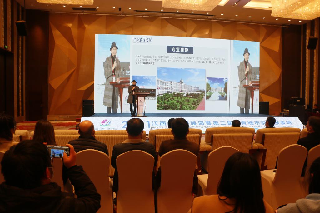 在全省纺织服装产业链对接暨行业高峰论坛上,我校校领导易城以“从顶层设计入手,对破解江西纺织服装产业跨越发展的人才之困”为题从服装产业发展变革、未来服装行业去向、服装教育如何改革、人力资源之困及江服产教融合发展思路等方面发表了主旨演讲 。