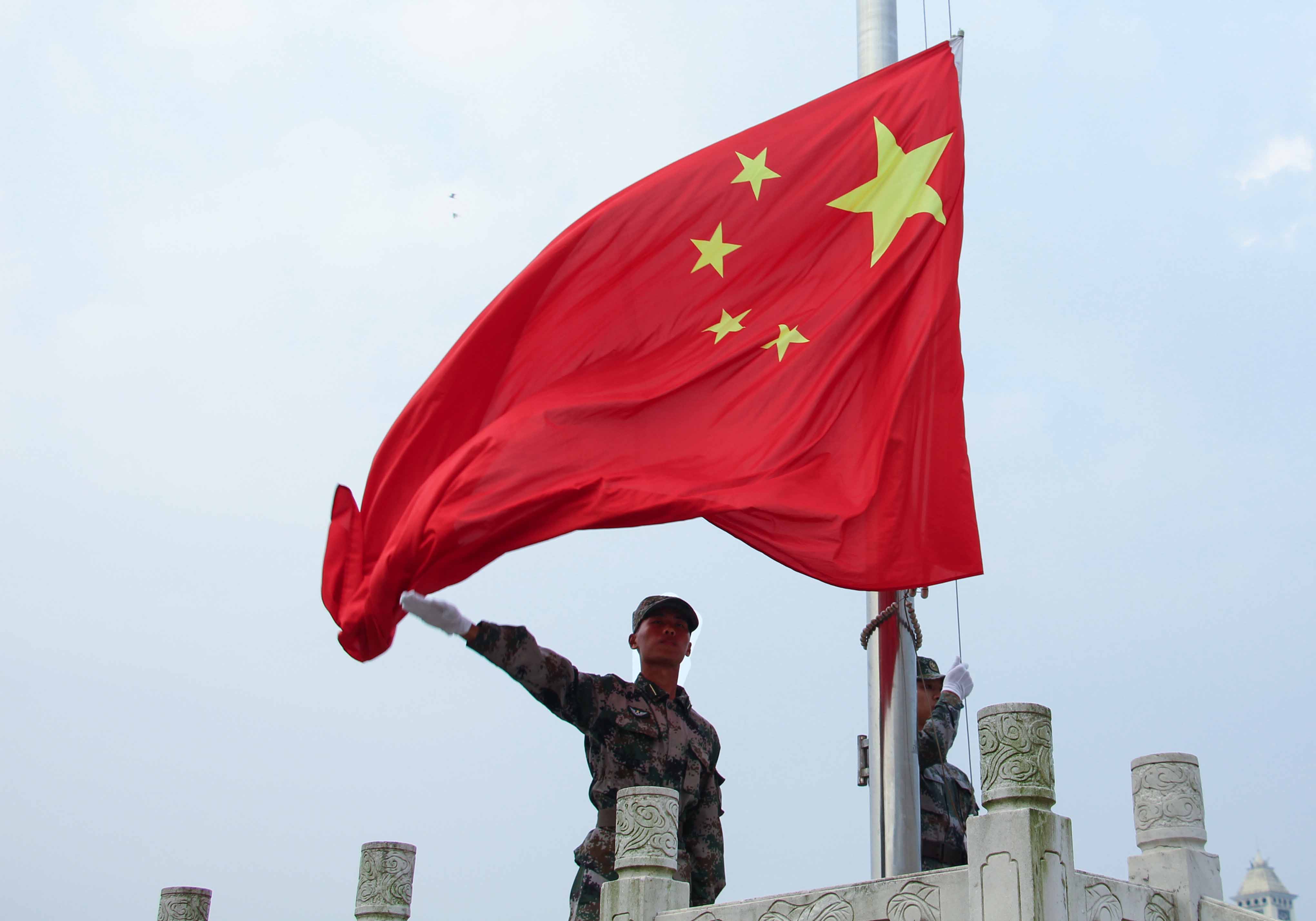7时,升旗仪式正式开始。英姿飒爽的承训部队庄严地护送着国旗,伴随着雄壮激昂的《义勇军进行曲》,五星红旗冉冉升起,迎风飘扬,全体师生行注目礼,用最朴实的方式表达了对祖国的拳拳之心和对中华民族的殷殷之情。接着,教务处处长朱秋月发表了“国旗下的讲话”。她讲到,71年前中国人民经过十四年艰苦卓绝的抗日战争,无数军民浴血奋战,忘我牺牲,最终取得了抗日战争的伟大胜利,为世界反法西斯战争的胜利作出了巨大贡献。朱处长期望同学们要弘扬先烈的崇高精神,牢记革命传统,珍惜革命先烈用鲜血和生命换来的美好生活。勇于担当,奋发有为,成为社会有用之才。