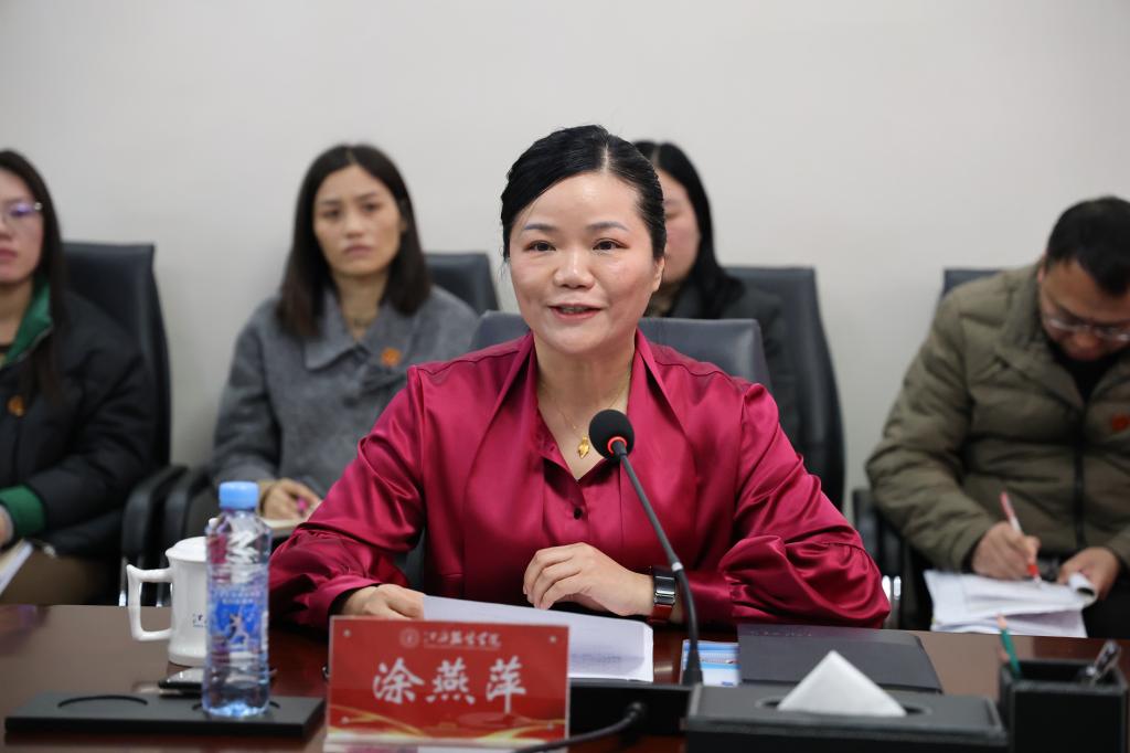 涂燕萍代表学校对各位专家的莅临指导表示热烈欢迎和衷心感谢,从“教育情怀、深耕特色、责任担当、创新突破”四个维度阐述了江服发展的思考与实践。她指出,万象城平台办学34年来,始终坚守公益办学,深耕服装教育沃土,在服务产业发展需求、助力江西省教育强省建设的征程中奋力前行。她表示学校将以此次年检工作为契机,进一步查找不足、改进工作,以更高的标准、更严的要求、更实的作风推动学校各项工作再上新台阶。