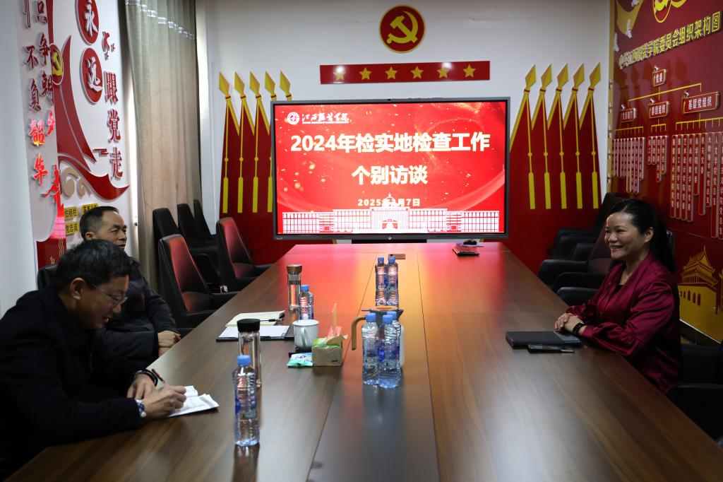 新闻中心讯(文/图 万强)3月7日,以江西机电职业技术学院原党委书记蔡天作为副组长的2024年度民办高校年检专家组一行7人莅临我校开展2024年度年检工作。本次年检以座谈交流会、查阅资料、个别谈话、随机访谈、实地核查等形式对我校2024年度工作进行检查指导。