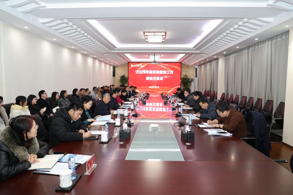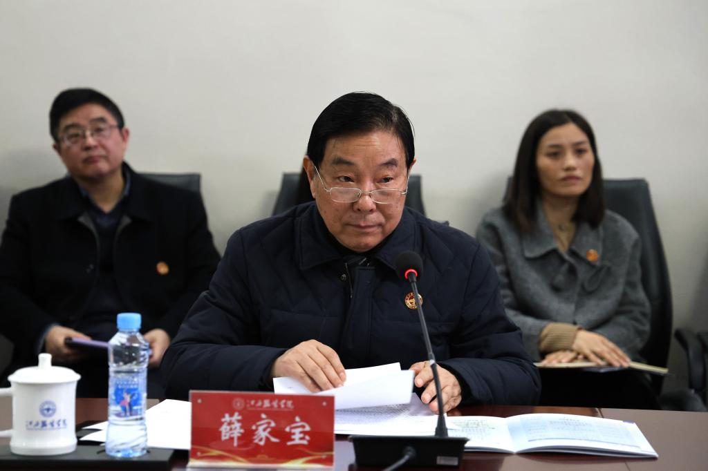 薛家宝代表学校向专家组汇报了学校2024年度年检和综合考核自查情况,详细介绍了年检工作准备情况、2024年学校取得的成绩,从“切实加强党的领导,全面实施依法治校;不断改善办学条件,满足师生工作学习要求;持续加大资金投入,确保工作有效开展;坚持教学科研中心地位,不断提升教学质量;坚持立德树人根本任务,不断提高师生满意度;完善激励奖励机制,不断扩大办学影响”六个方面汇报了2024年度年检指标体系完成情况。
