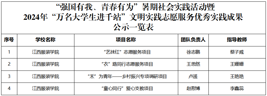 本次取得的显著成果,标志着我校在大学生暑期社会实践活动和“万名大学生进千站”文明实践志愿服务工作上的辛勤耕耘得到了认可,极大地激发了我校学生积极参与社会实践活动的热情。今后,学校将继续深入开展大学生暑期社会实践活动,切实发挥实践育人作用,引领江服学子扎根中国大地了解国情民情,在实践观察中学习党的历史、坚定理想信念、紧跟党的步伐,在与现实相结合的“大思政课”中“受教育、长才干、作贡献”,奋力成长为能够担当起民族复兴大任的新时代青年。
