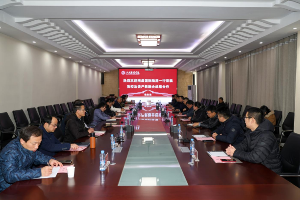 首先,副校长刘孜杰代表学校向来访嘉宾致以诚挚欢迎,并在致辞中介绍了学校的建设发展情况。他强调,学校高度重视本次合作,一定会充分扛起自身担当,与南昌国际陆港全方位、深层次开展交流合作。他希望,以双方的精诚协作书写“优势互补、互利共赢”的精彩篇章。未来,双方将深挖契合点,让校港合作结出丰硕成果,为地方经济和文化的发展提供强有力的人力支持与智力支撑。