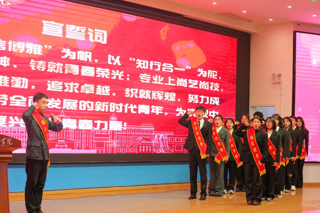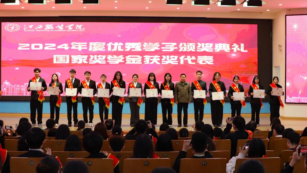 国家奖学金获奖代表作庄严宣誓:“以‘勤信博雅’为帆,以‘知行合一’为舵,践行江服精神,铸就青春荣光;专业上尚艺尚技,学业上唯精唯勤,追求卓越,织就辉煌,努力成为德智体美劳全面发展的新时代青年,为实现中华民族伟大复兴贡献青春力量!”坚定而激昂的誓言在整个会场中久久回荡。大会在校歌《书写华章,织就辉煌》的激昂旋律中圆满落幕。