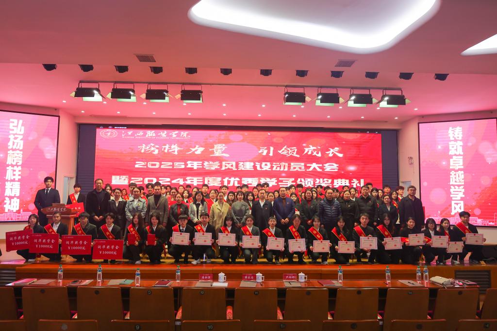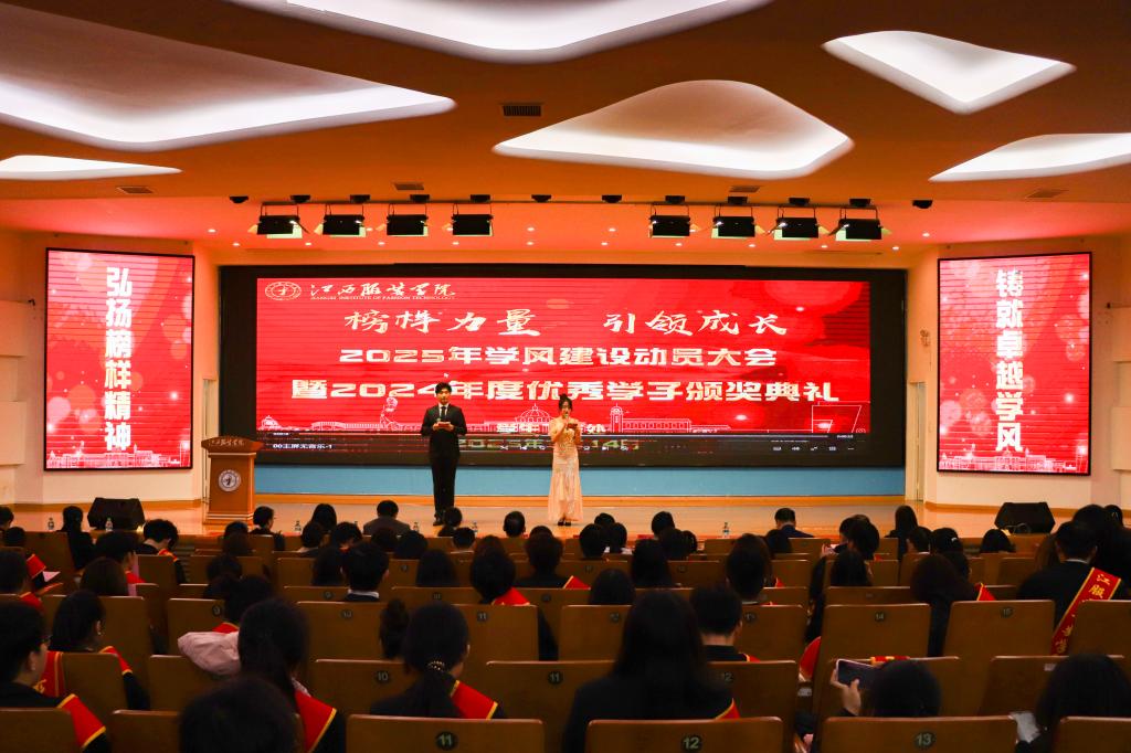 新闻中心讯(供稿/学工处)为表彰先进典型,营造勤学奋进的校园文化氛围,3月14日下午,我校在思贤楼三楼报告厅隆重举行2025年学风建设动员大会暨2024年度优秀学子颁奖典礼。校长薛家宝、党委副书记唐新强、校长助理尹娜娜以及相关职能部门负责人、二级学院党委书记(副书记)、教师代表和学生代表共400余人参会,共同见证荣誉时刻,凝聚奋进力量。