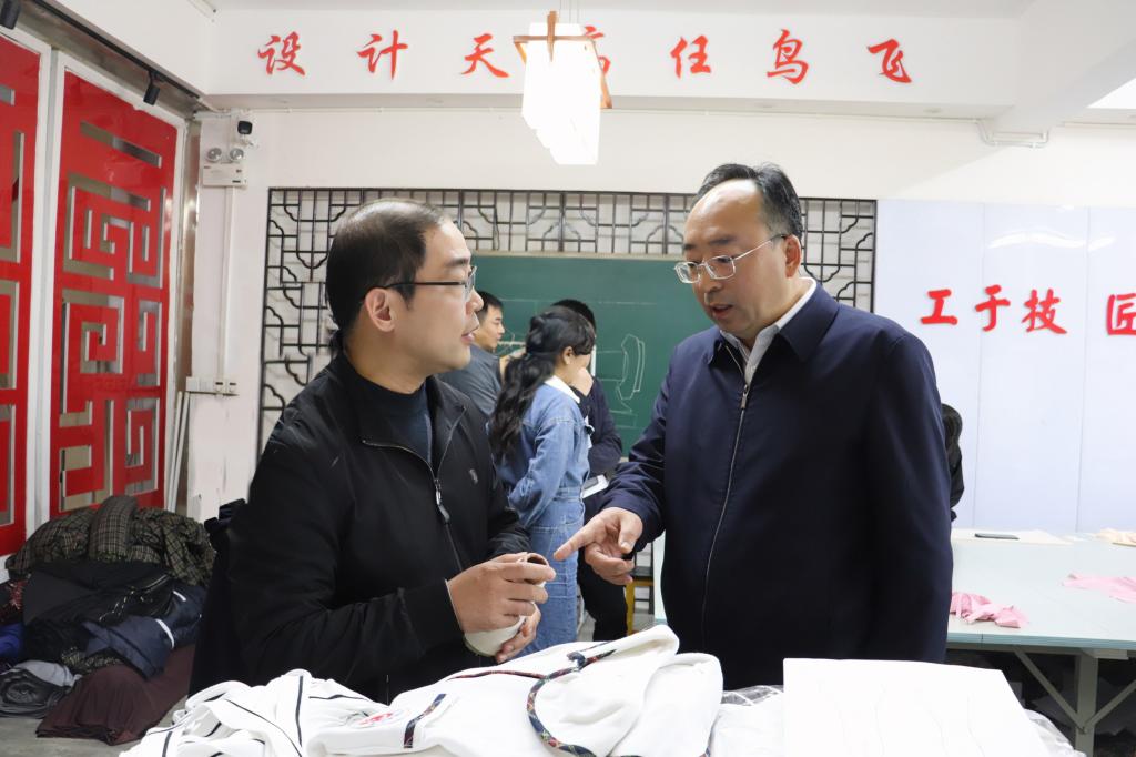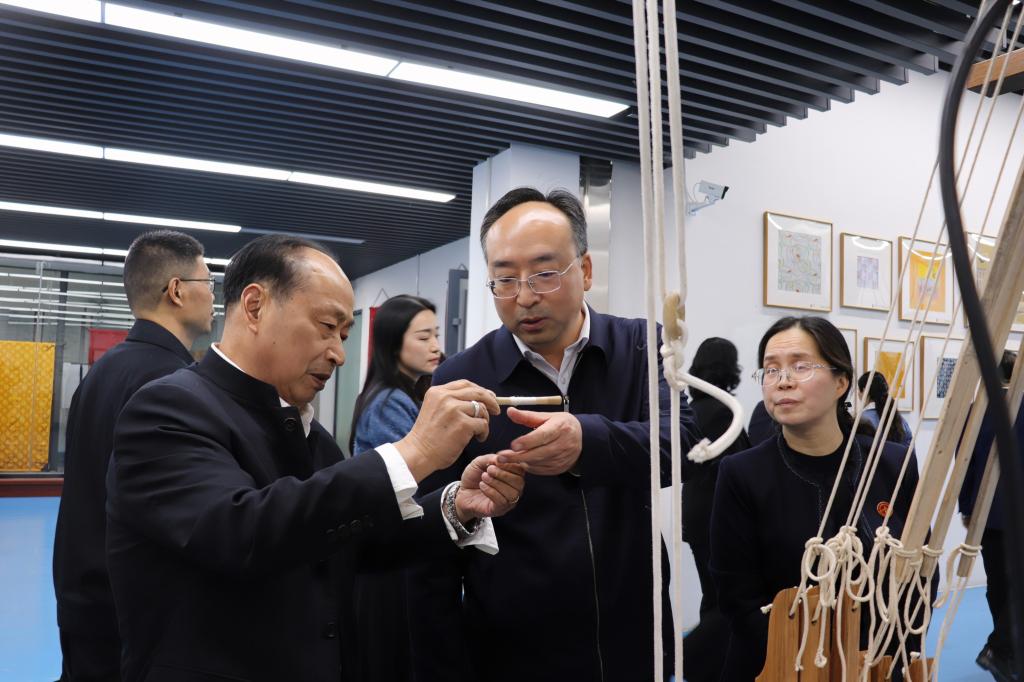 调研组先后参观了798创意中心工作室、服饰文化博物馆和古丝绸绣技艺研究院,深入了解了学校的发展历程和办学特色。重点调研了学校在加强服装研发设计、支持时尚产业发展等方面的创新成果和做法。