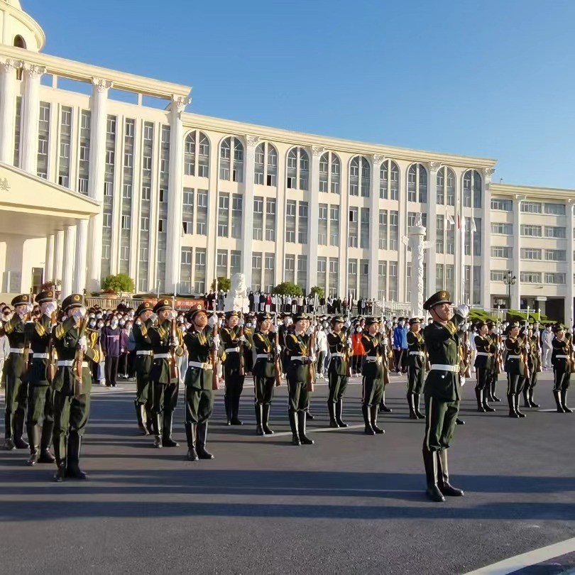 10月10日上午7点,大数据学院、人文学院在主教学楼国旗广场举行以“青春喜迎二十大,强国有我新征程”主题升旗仪式。升旗仪式上,国旗护卫队迈出了铿锵有力地步伐,五星红旗在晨光中徐徐升起。在场师生代表共唱国歌,向国旗敬礼,真情祝福祖国华诞。