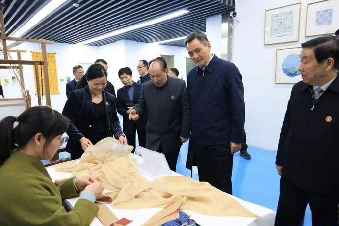 调研中,李红军实地察看学校CHEN.1988时尚女装产业学院、好望角手工皮具工作室、郭晓强劳模创新工作室、南昌市服装数字化系统设计重点实验室等,参观服装文化展览,现场观看师生织绣技艺展示,与学校负责人和师生亲切交流,详细了解学校发展、办学特色、产教融合、人才培养等情况。李红军充分肯定学校工作取得的成效,对学校全力服务南昌针纺产业发展表示感谢。李红军指出,服装行业充满着创意和创新,时尚产业大有可为。希望学校进一步加强学科专业建设,强化教育教学管理,全面提升办学水平,努力培养更多高素质专业人才,持续推动服装行业创新发展;充分发挥专业优势,运用现代技术,全面展现中国服饰从古至今的演变过程,传承好中华民族优秀传统服饰文化,让传统服饰在时尚产业领域焕发新的光彩;积极参与南昌举办的重大活动,全方位展示学校师生创作的富有时代特征的服装创意设计产品,为城市增添更多时尚元素,进一步展现城市魅力、激发城市活力;聚焦江西省“1269”行动计划和南昌市“8810”行动计划,紧密对接青山湖区针纺服装产业相关企业,深化产教融合、校企合作,共建产业学院、实训基地,携手推动南昌针纺服装产业高质量发展。
