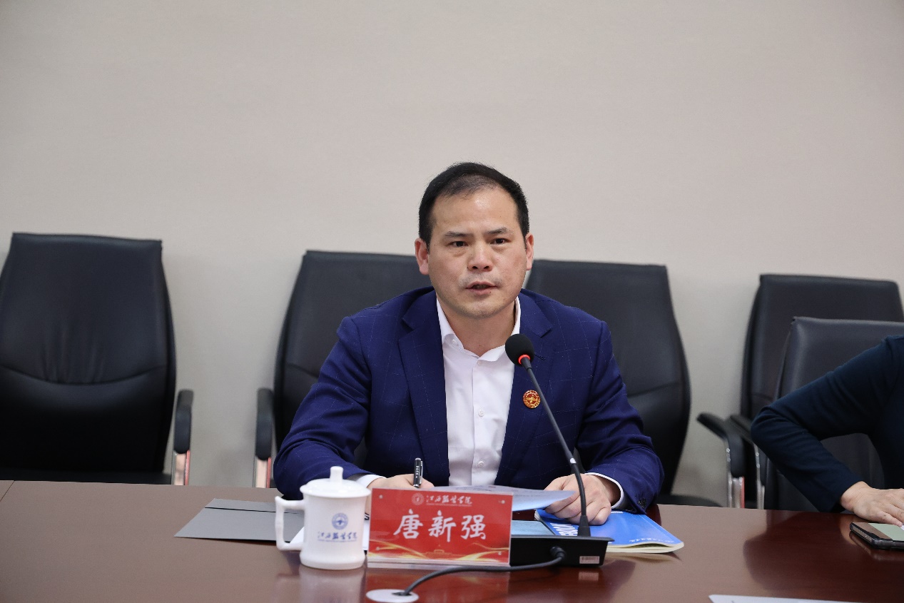 唐新强代表学校对青山湖区长期以来给予学校建设发展的关心和支持表示衷心感谢。并用“三大、三特、三美”向区领导介绍了我校发展历程、办学特色、学院设置、专业建设、人才培养及校企合作等情况,阐述了学校办学34年来教育事业的发展成果。他强调,服务地方经济发展是高校的重要使命,校方将充分发挥时尚学科特色和人才资源优势,精准对接青山湖区产业发展需求,通过建立定期会商机制、深入实地调研等方式,推动教学科研与产业实践有机融合,切实为提升青山湖区产业核心竞争力贡献高校智慧与力量。