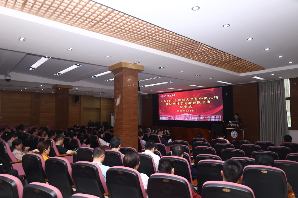 新闻中心讯(文/江宣 图/徐志勇)4月18日上午,万象城平台在行政楼一楼报告厅举行深入贯彻中央八项规定精神学习教育读书班结业式。校党委书记林井萍作总结讲话。党委副书记、纪委书记李宝君主持结业式。