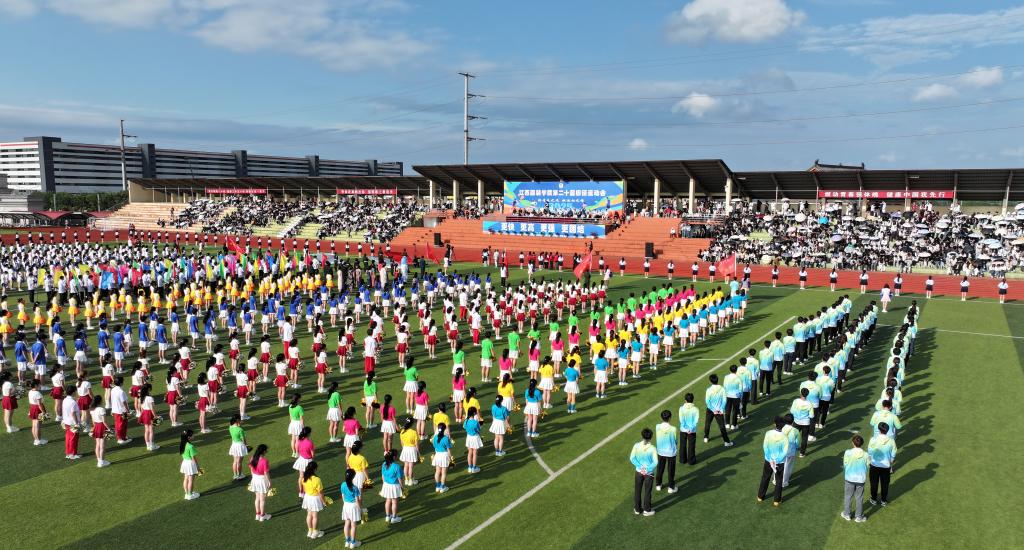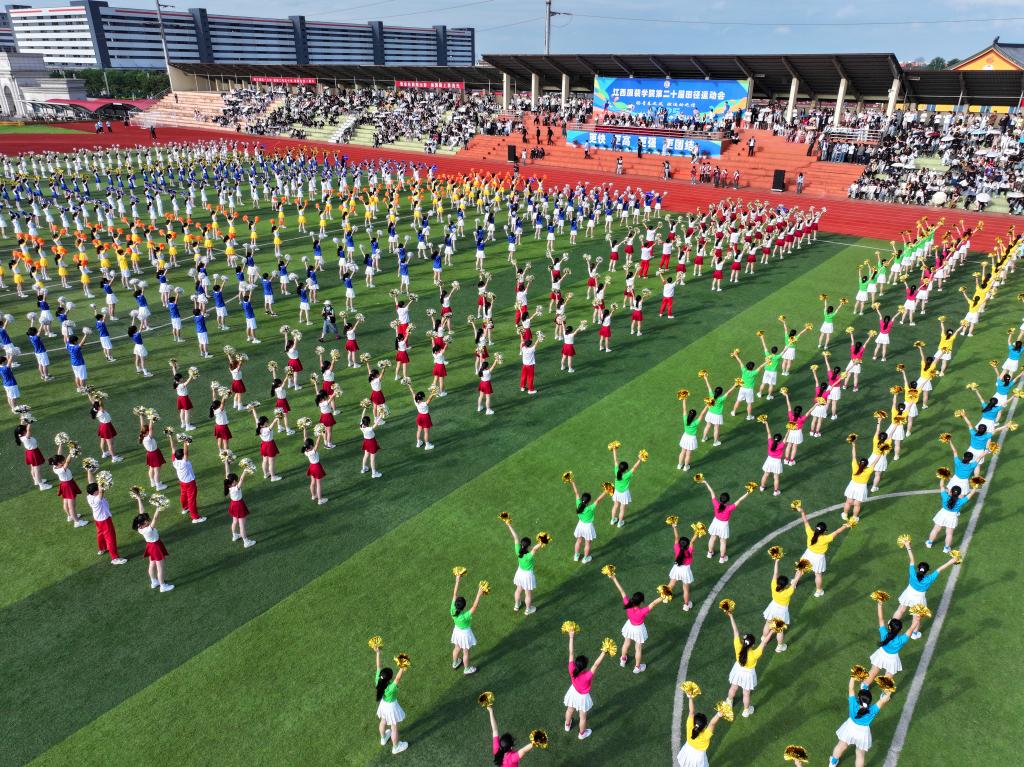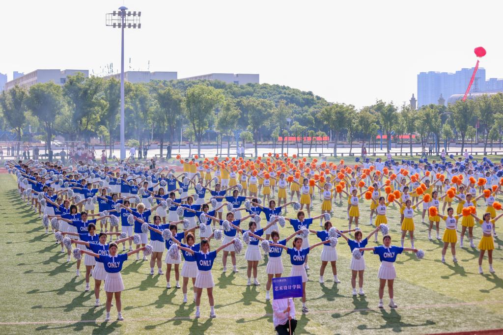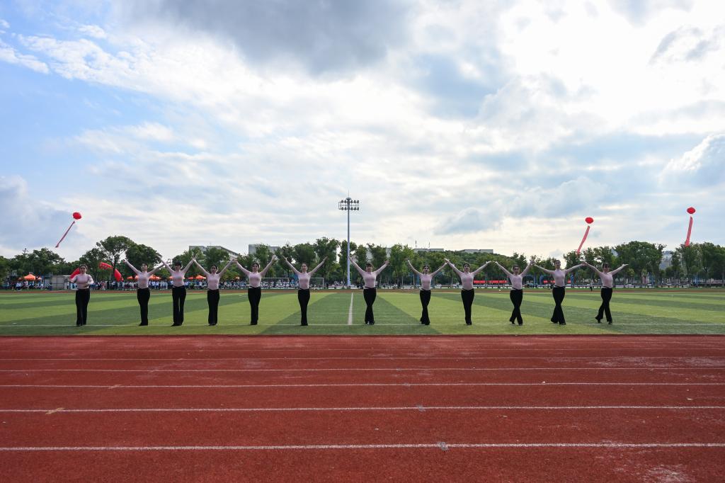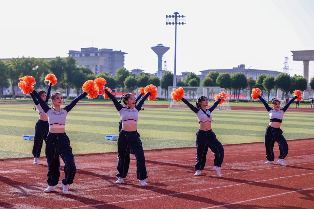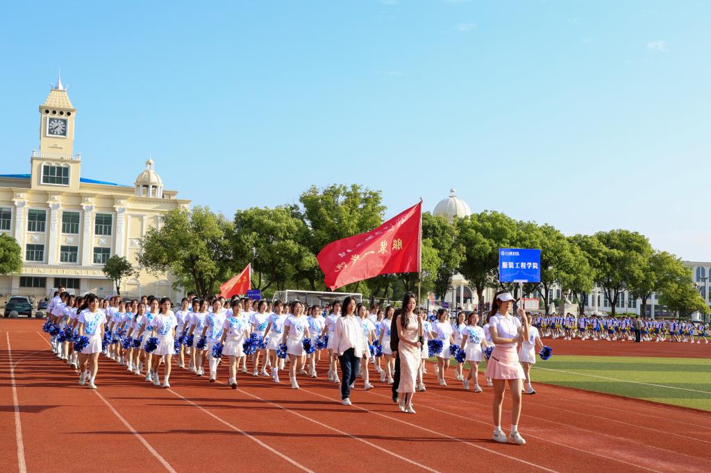 在大型团体操比赛中,各学院学生的动作规范而流畅,传递出积极向上的体育精神,激励着江服师生共同追求强健的体魄和阳光的心态。