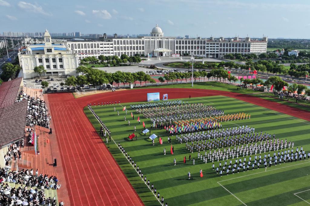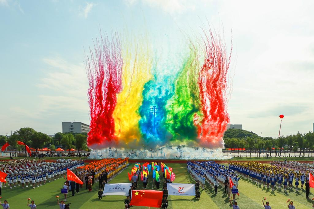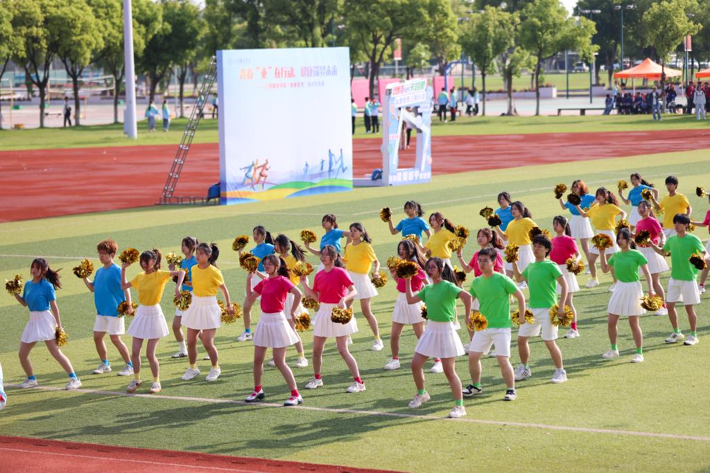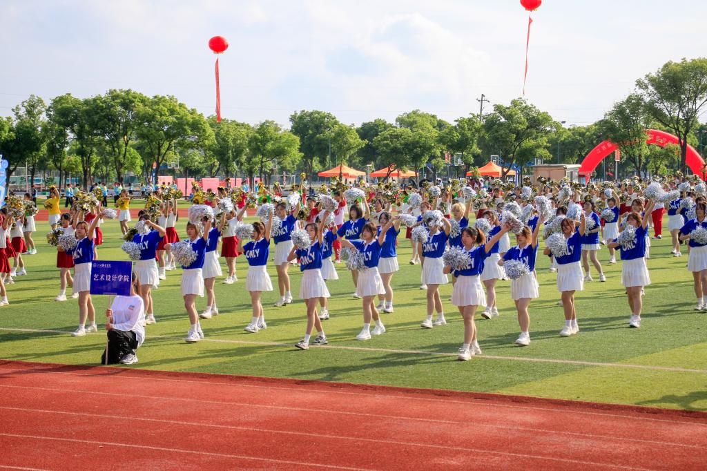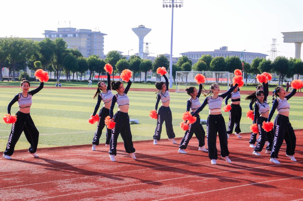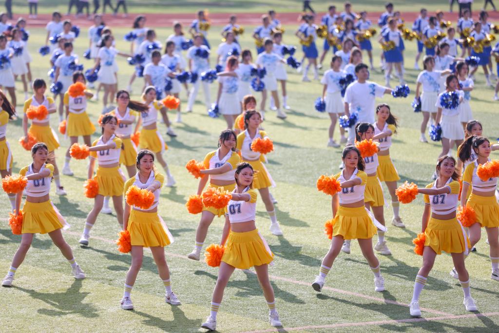 在大型团体操比赛中,各学院学生的动作规范而流畅,传递出积极向上的体育精神,激励着江服师生共同追求强健的体魄和阳光的心态。