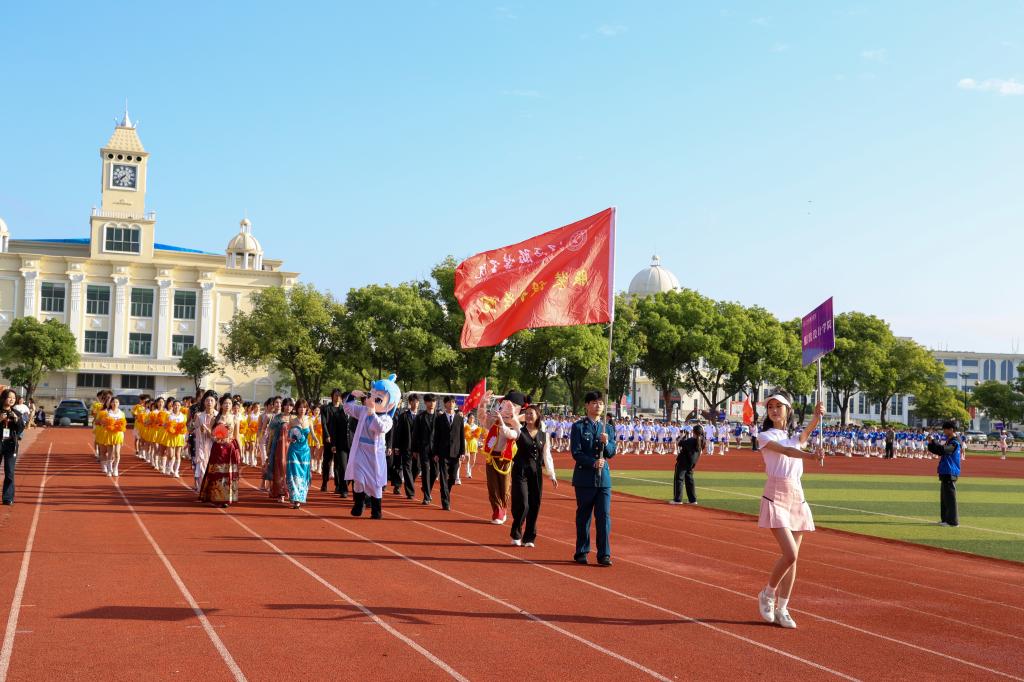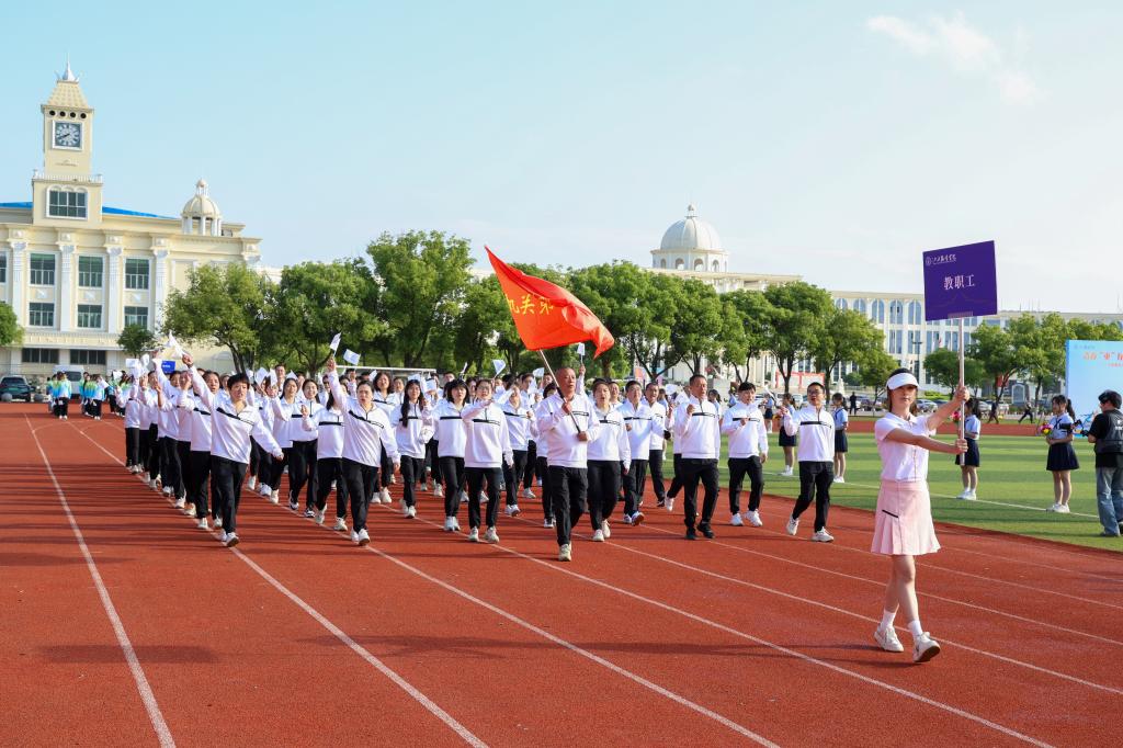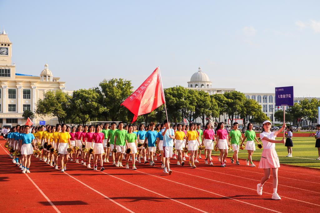 在庄严的国歌声下,神圣的五星红旗冉冉升起。伴随着激昂的运动员进行曲,学校师生组成的12个充满创意的代表队方阵,身着鲜亮的运动装,高喊着激昂的口号,展现出江服师生的蓬勃朝气和自信热情,获得了在场师生们阵阵热烈的掌声。