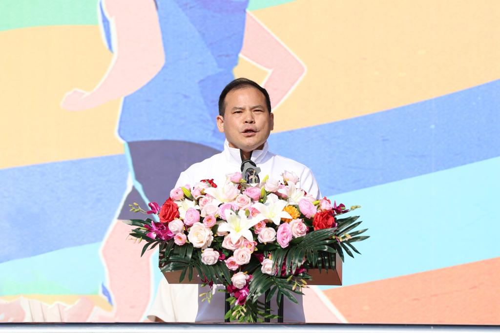 副校长刘孜杰为此次运动会致开幕词。他代表学校对本届运动会的顺利举行表示了热烈祝贺,向参加此次运动会的全体运动员、裁判员以及工作人员致以亲切的问候和衷心的感谢!他指出,近年来,学校深入贯彻落实习近平总书记关于体育工作的重要指示精神,坚持“健康第一”的教育理念,积极推进“阳光体育”,注重培养大学生良好的体育锻炼习惯和健康的生活方式,2024年我校师生团队在国家级、省级赛事中屡获佳绩,彰显体育育人实效。他希望全体运动员能发扬更快、更高、更强的奥运精神,积极进取,努力拼搏,尊重裁判,尊重对手;全体裁判员能严格遵守裁判员守则,认真履行岗位职责,公正裁判、准确裁决,为比赛提供良好的竞技氛围;全体工作人员能恪尽职守、密切配合,维护良好的比赛秩序,提供热情高效的服务,确保各项比赛顺利进行。