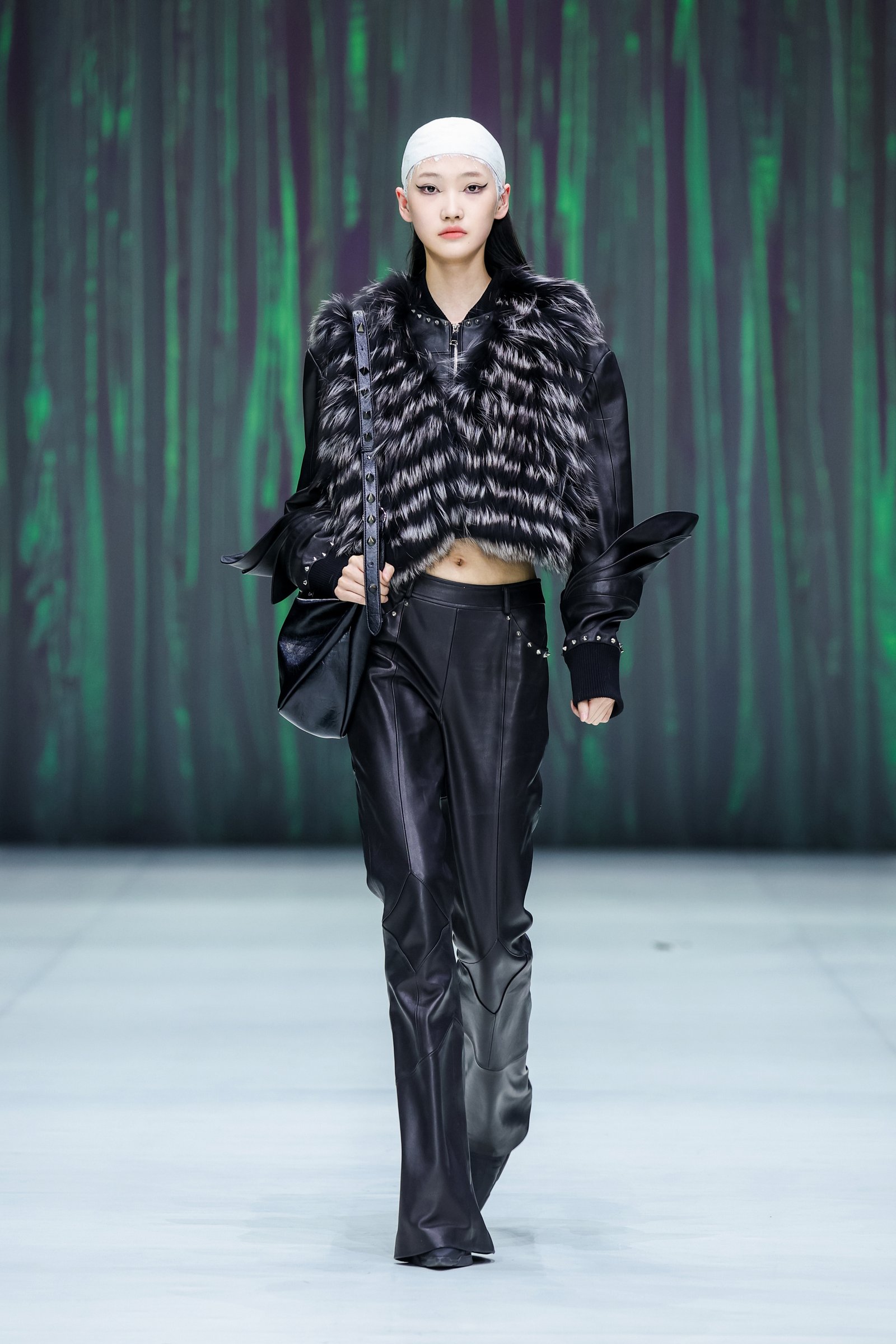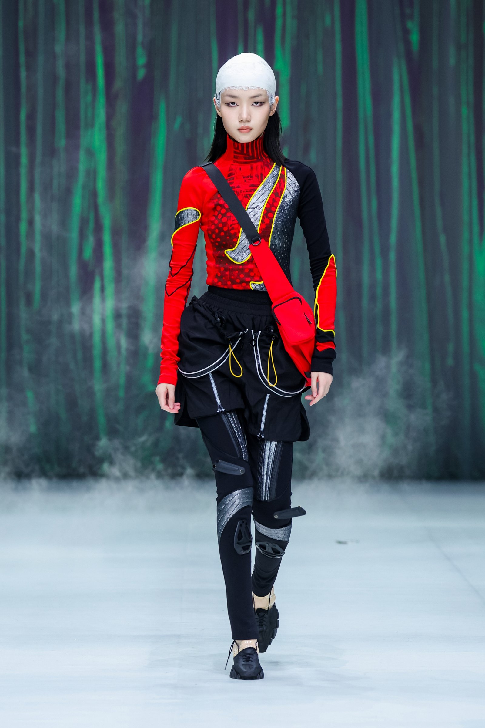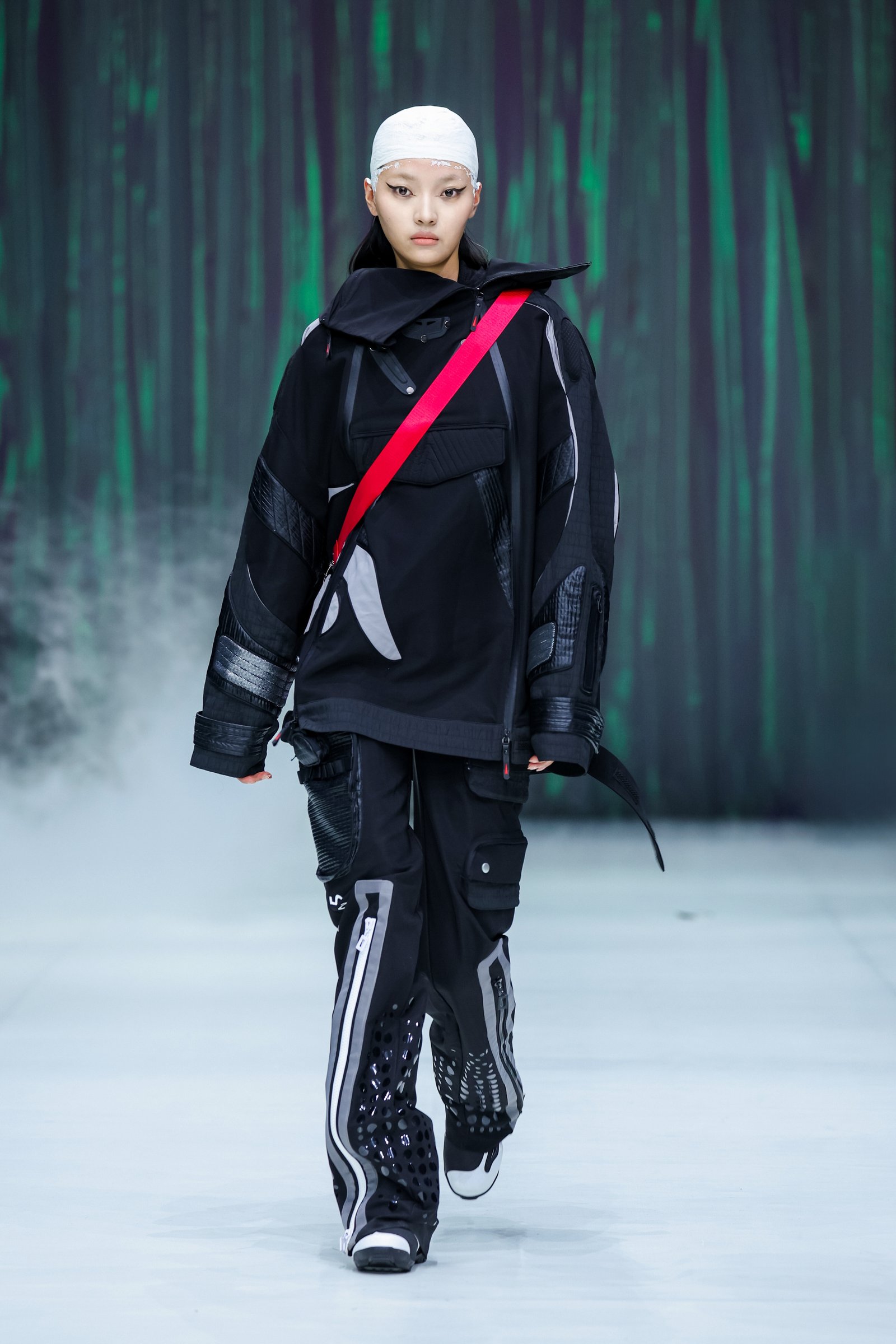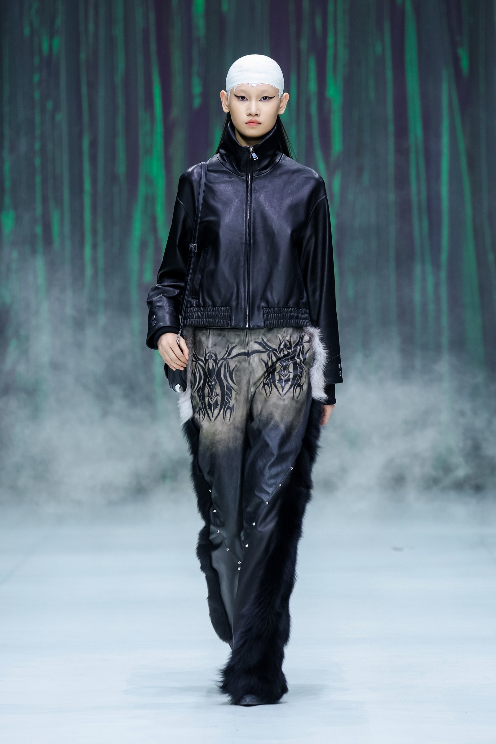 在本场发布秀中以曲线与机械结构的金属色彩交织为视觉母题的设计作品,将工业文明的精密感与生命体的律动感进行重组,既呼应了未来主义的冷峻,又暗合东方“天人合一”的哲学理念。