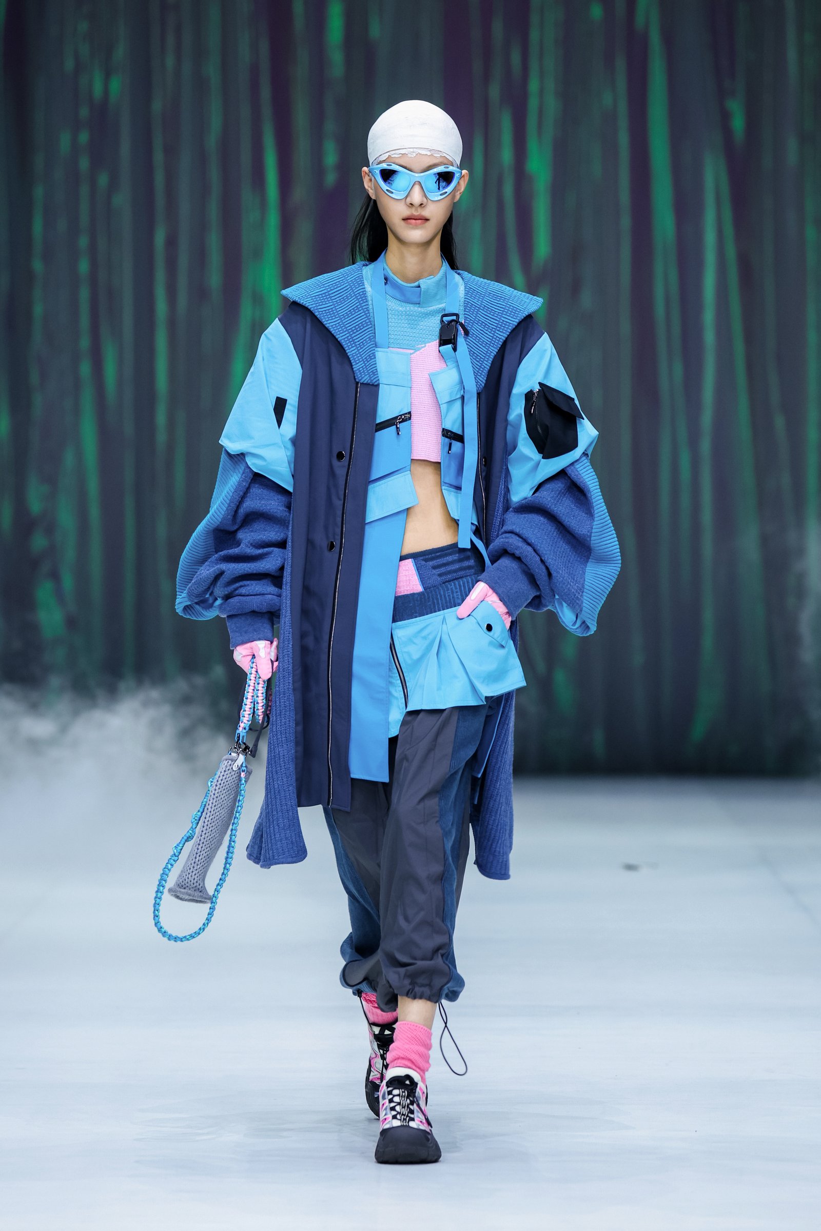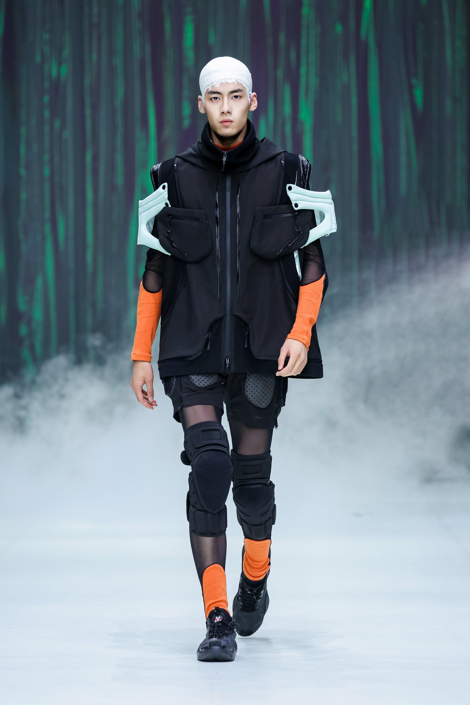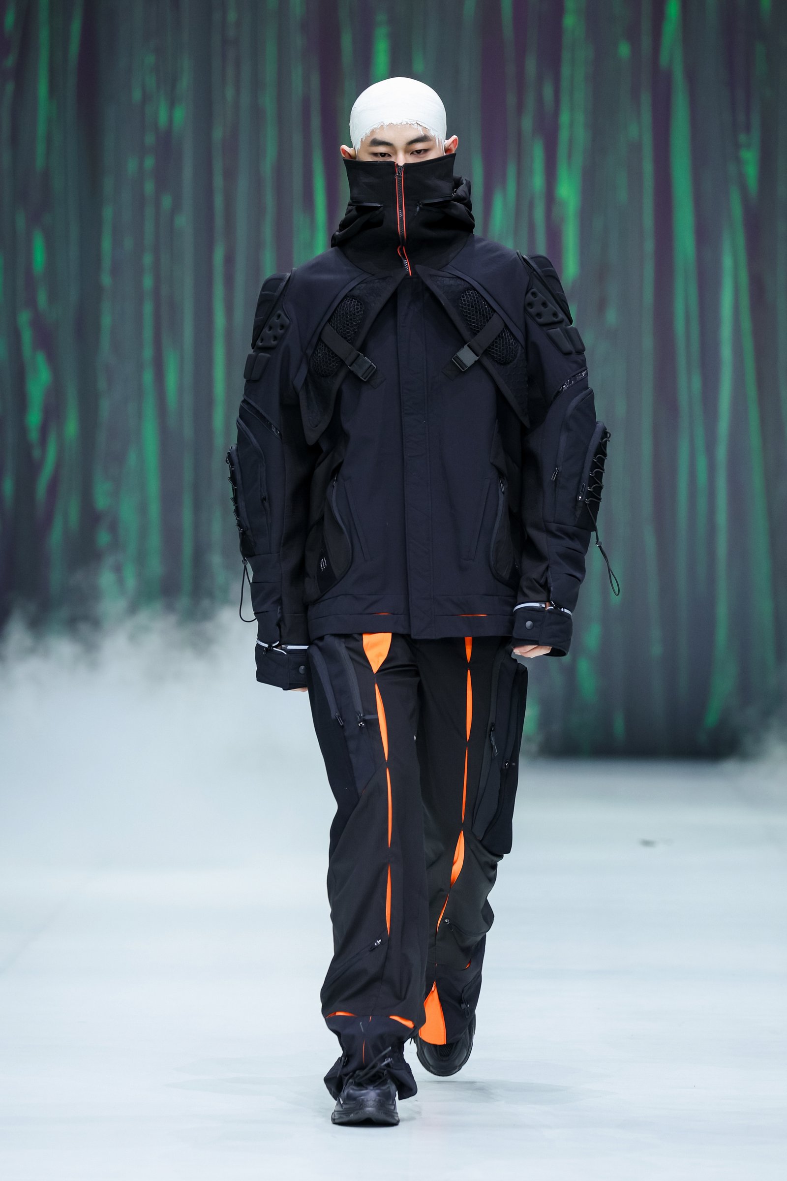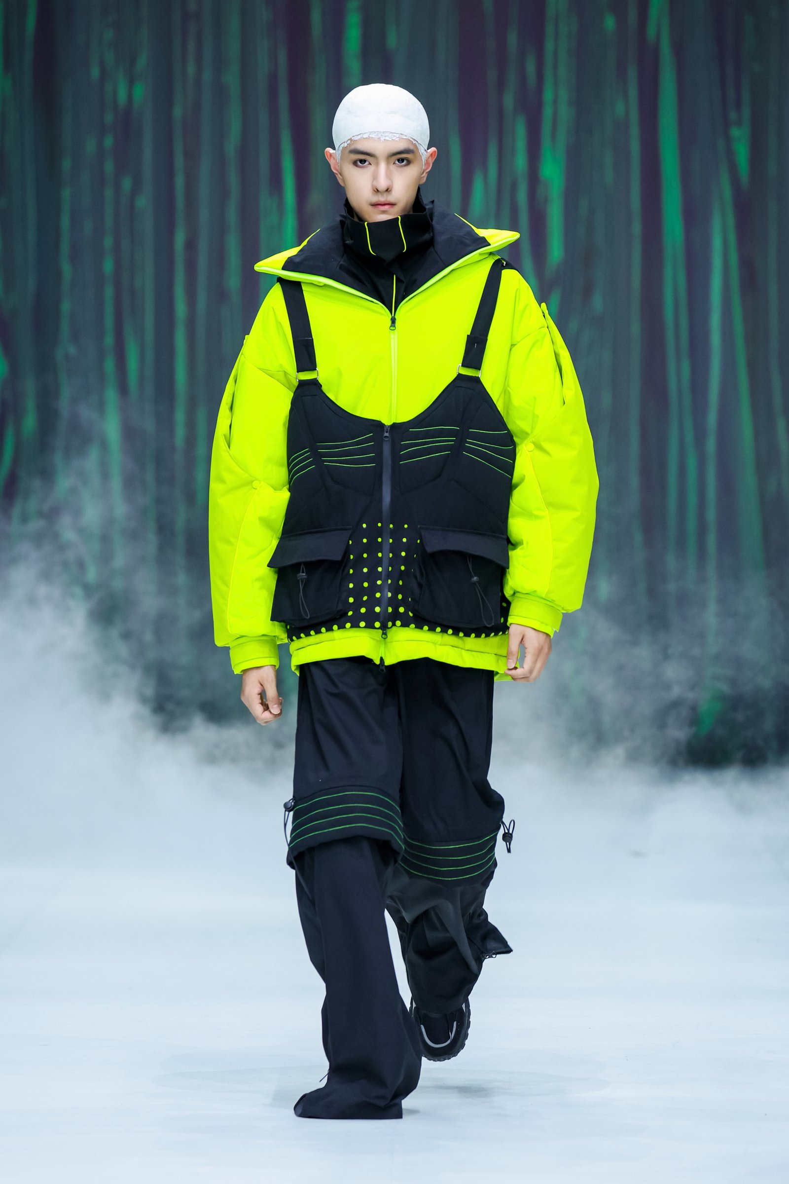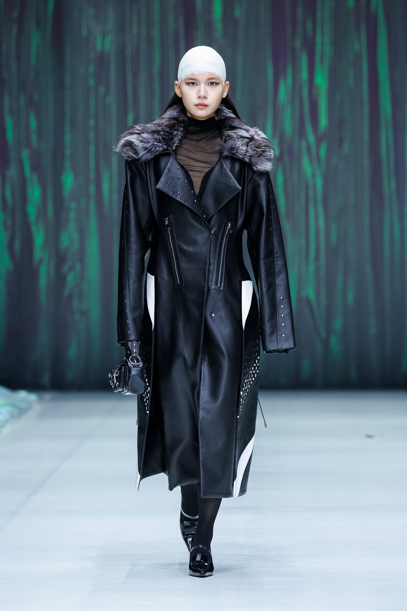 在本场发布秀中以曲线与机械结构的金属色彩交织为视觉母题的设计作品,将工业文明的精密感与生命体的律动感进行重组,既呼应了未来主义的冷峻,又暗合东方“天人合一”的哲学理念。