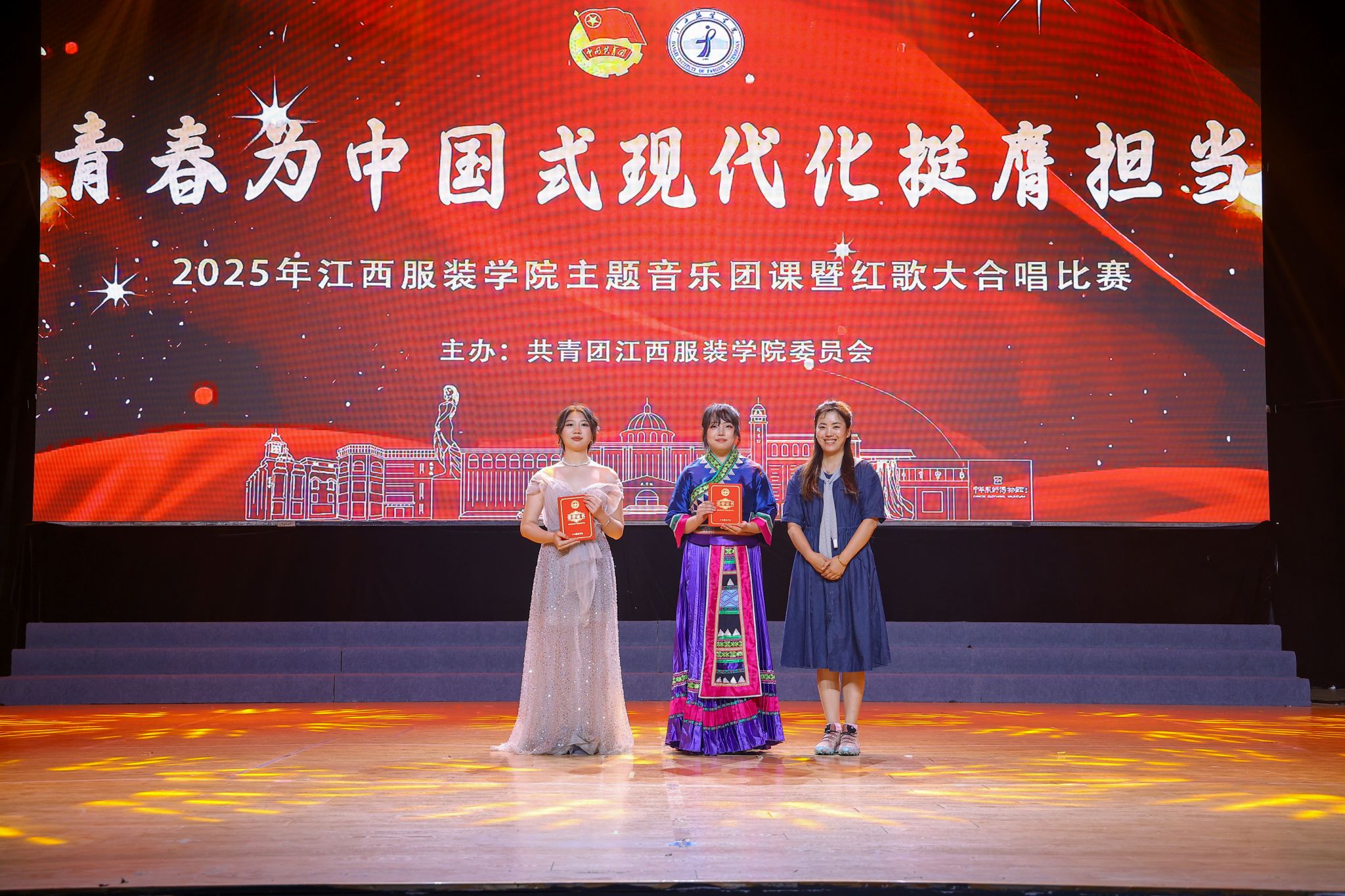 经过激烈角逐,最终服装设计学院荣获一等奖,服装工程学院荣获二等奖,时尚传媒学院荣获三等奖。大数据学院、人文学院、商学院、艺术设计学院等荣获优秀奖,服装设计学院刘品萱、服装工程学院郑晓晓荣获优秀指挥奖。颁奖环节气氛热烈,嘉宾们依次为获奖集体和个人颁发荣誉证书,并合影留念。