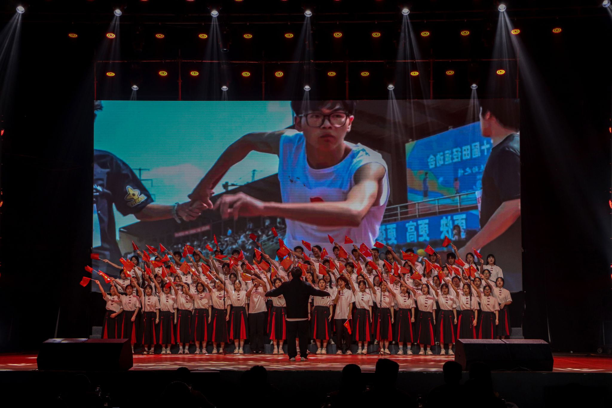 新闻中心讯(文/樊翔 图/钟宏鹏 黄梓翔)为深入贯彻党的二十大精神,致敬“红五月”的革命传统与奋斗精神,弘扬红色文化,赓续红色基因,以青春之力营造积极向上的校园文化氛围。5月27日晚,“青春为中国式现代化挺膺担当”主题音乐团课暨红歌大合唱比赛在我校霓裳宫举行。校党委书记林井萍、党委副书记唐新强、校长助理马国照以及江西应用科技学院团委书记张荆莅临本次活动,党委组织部、宣传部、学生工作部、校团委以及各学院党委负责人和1800余名师生共同在现场观看了本次主题团课暨红歌大合唱比赛。