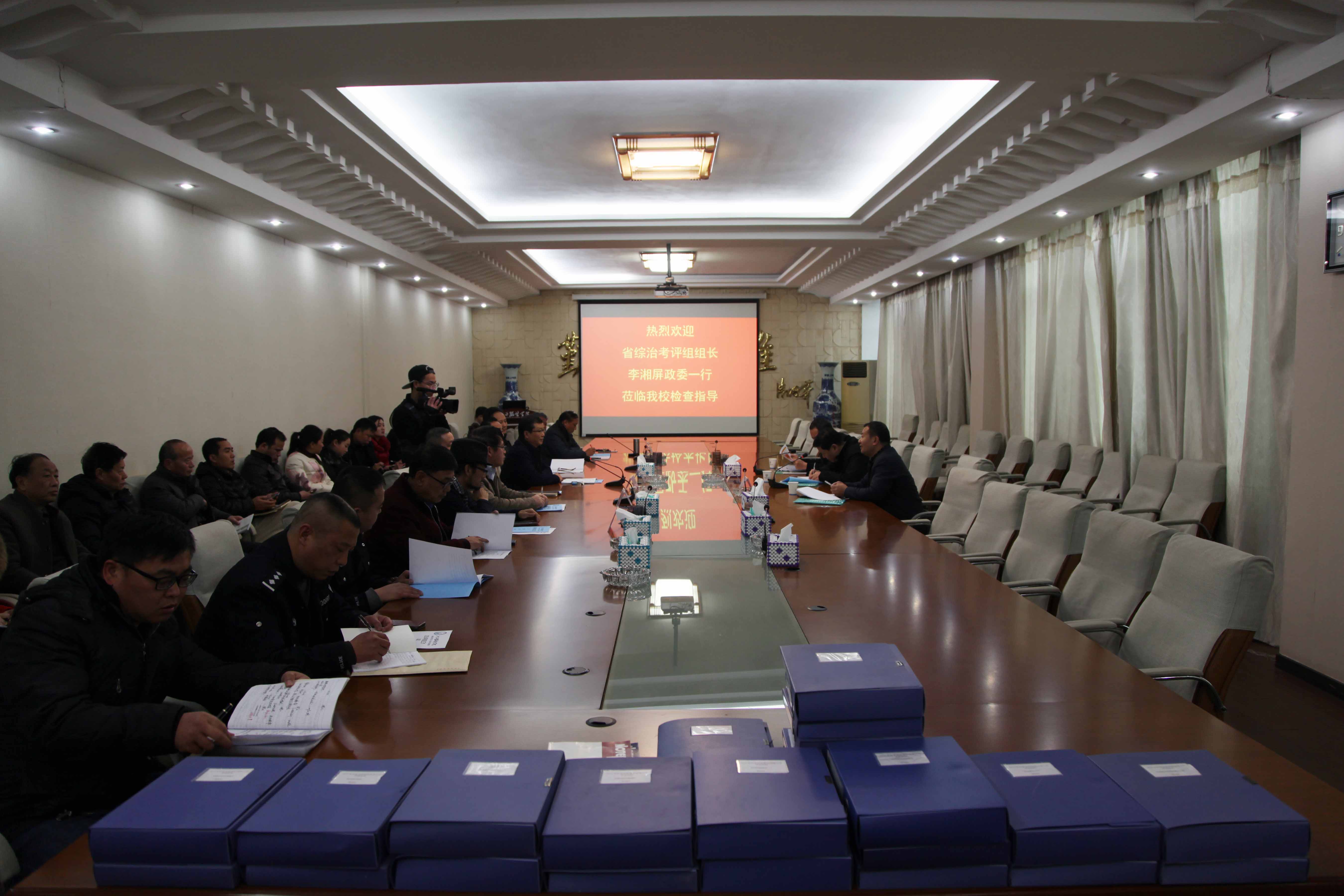 12月21日下午,以省公安厅警务保障部政委李湘屏为组长的省综治工作考评组一行3人莅临我校检查评估2016年度综合治理工作。综治评估汇报会在行政楼二楼会议室举行,我校校长陈万龙,副校长杨涛,党委副书记徐红先、高建国及各综治责任单位主要负责人参加了汇报会。