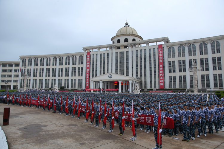 为纪念中国人民抗日战争暨世界反法西斯战争胜利70周年,引导广大师生铭记历史、缅怀先烈、珍爱和平、开创未来,传承弘扬伟大的抗战精神,9月3日清晨,我校在主教学楼广场隆重举行了纪念抗战胜利70周年升旗仪式。校党委副书记高建国,承训部队刘连长和全体教官,学校各分院(部)领导及2015级新生、新生班主任等4000余人参加了升旗仪式。校团委书记朱红主持了升旗仪式。
