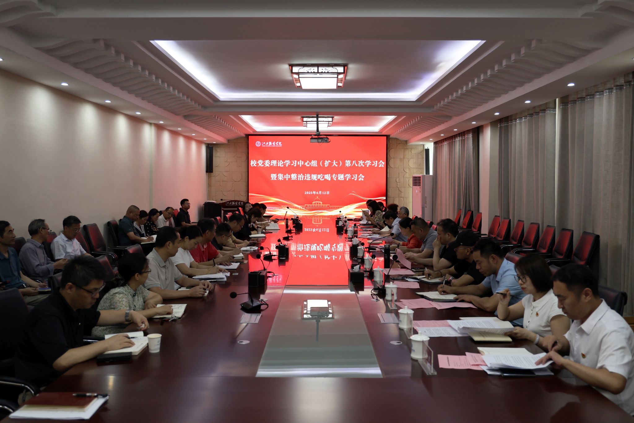 新闻中心讯(文/龙瑞行 图/万强)6月12日上午,我校召开党委理论学习中心组(扩大)第八次学习会暨集中整治违规吃喝专题学习会,传达学习《关于集中整治违规吃喝的通知》《中纪委:党员干部参加这20种饭局就出局》等相关内容和文件精神,研究贯彻落实意见。校党委书记林井萍主持会议并讲话。