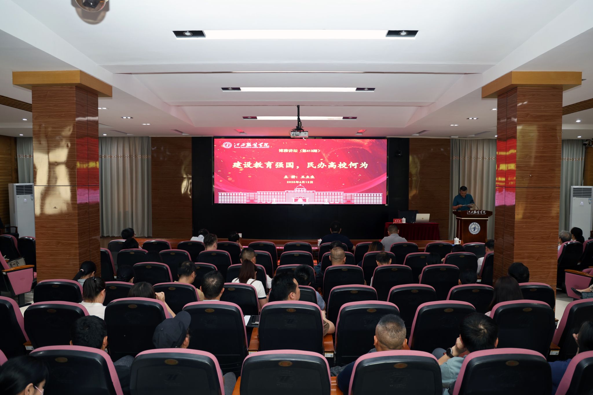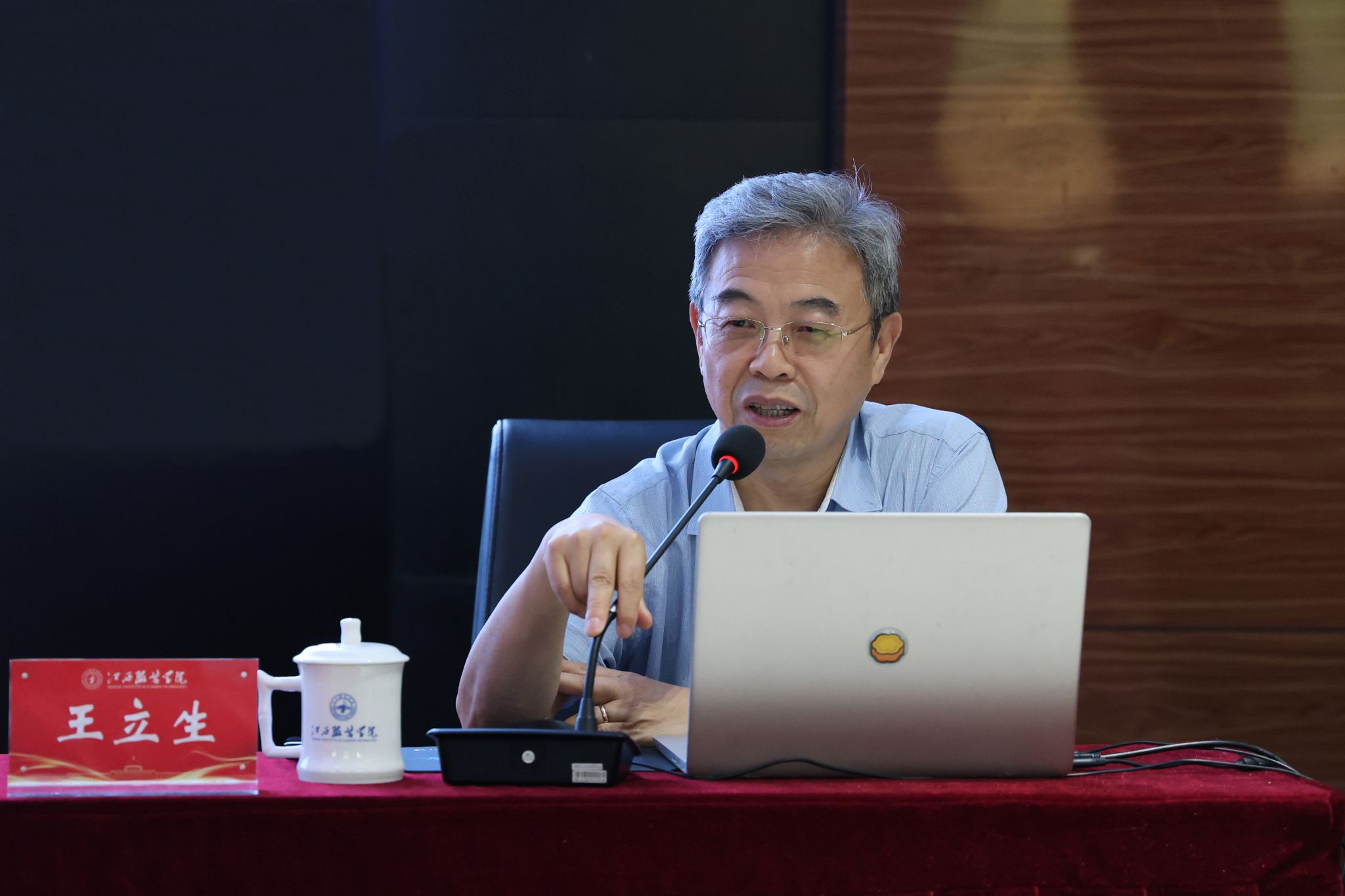 新闻中心讯(文/图 万强)6月12日,中国民办教育协会副会长兼民办高等教育专业委员会理事长、教育部学位与研究生教育发展中心原主任王立生来校调研指导并作专题报告。我校理事长涂燕萍、党委书记林井萍、校长薛家宝等校领导陪同调研。学校全体在家校领导,全体中层干部、各学院领导班子成员、学科骨干教师代表聆听了报告。