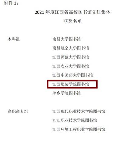 新闻中心讯(图书馆供稿) 近日,江西省高校图书情报工作委员会对2021年度江西省高校图书馆先进集体、先进工作者进行评选表彰,我校图书馆荣获2021年度江西省高校图书馆先进集体。据悉,本次评选活动共接受了31家单位报送的先进集体,经过评审委员会严格评审,评选出10家先进集体。其中本科组7所高校,高职高专组3所高校,我校是本科组唯一一所获此荣誉的民办高校。同时,兰志玲、梁彦博、方丽荣三位老师荣获2021年度江西省高校图书馆先进工作者。