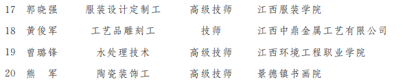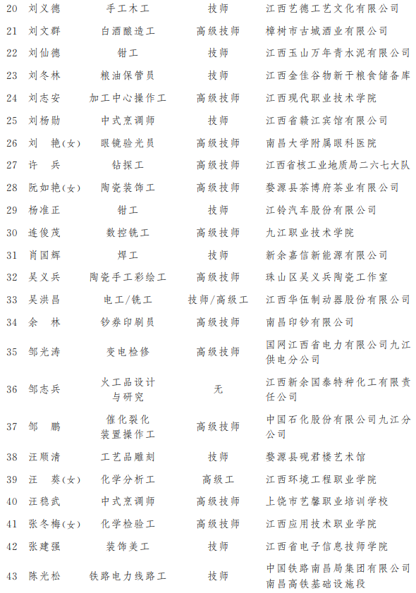 一、“赣鄱工匠”(按笔画顺序排序,共20人)