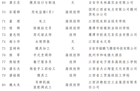 二、“江西省能工巧匠”(按笔画顺序排序,共80人)